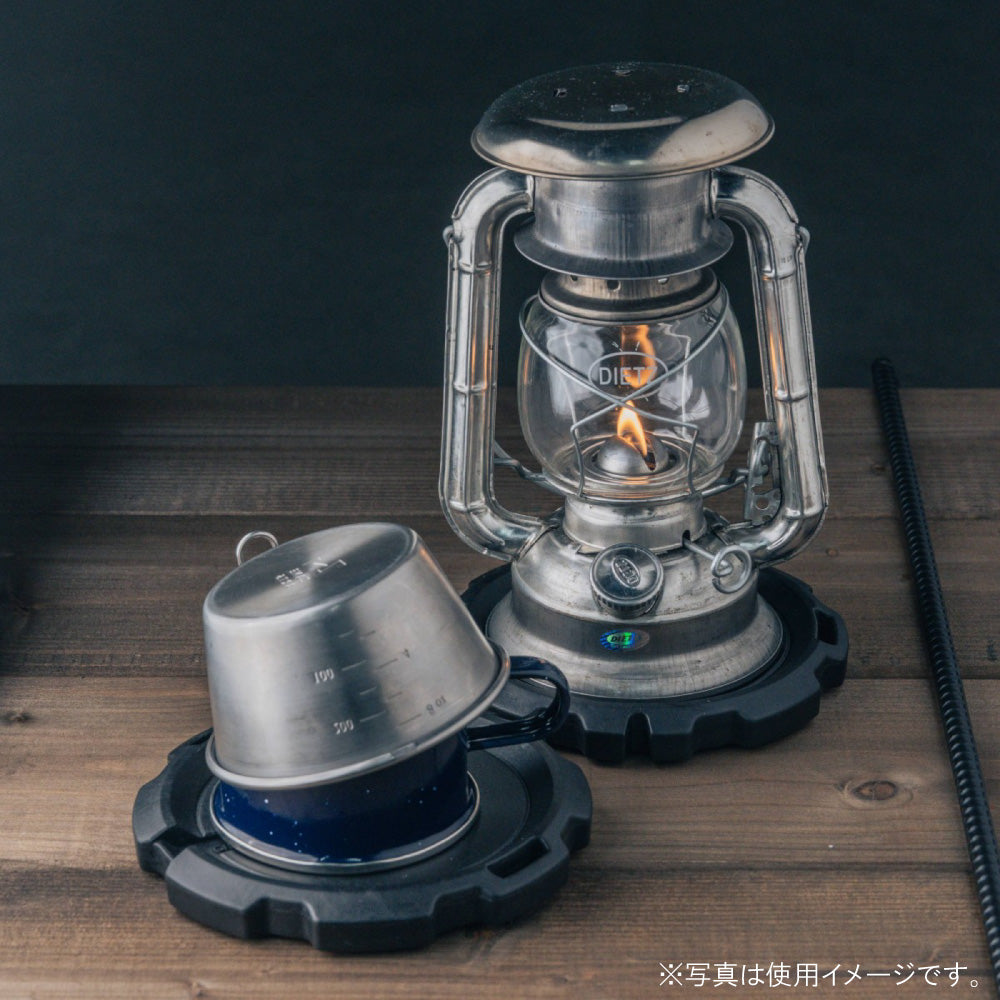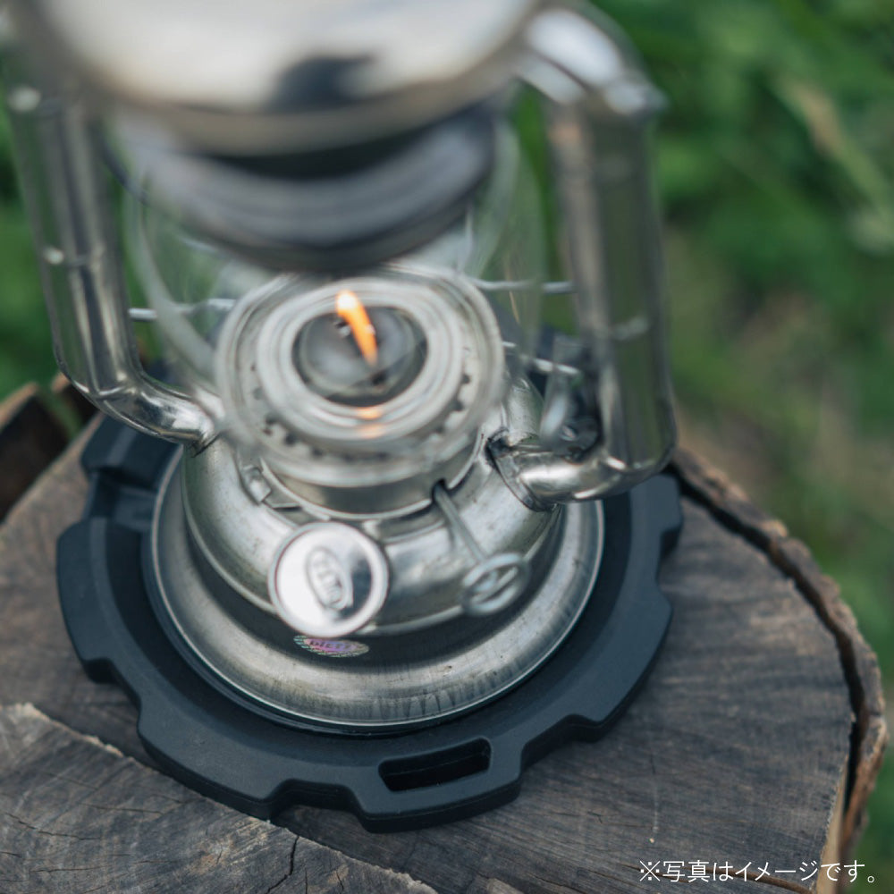 結露したOD缶に砂や土が付着しないようにでき、さらにカバーを併用すれば素敵なランタンスタンドが完成。