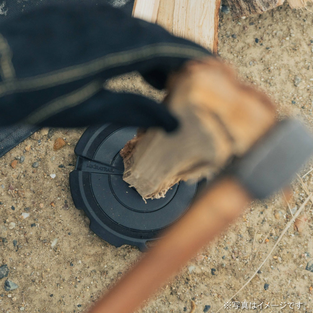 柔らかい地面でも薪に加わる力を逃がさず、スムーズに薪割りできる。