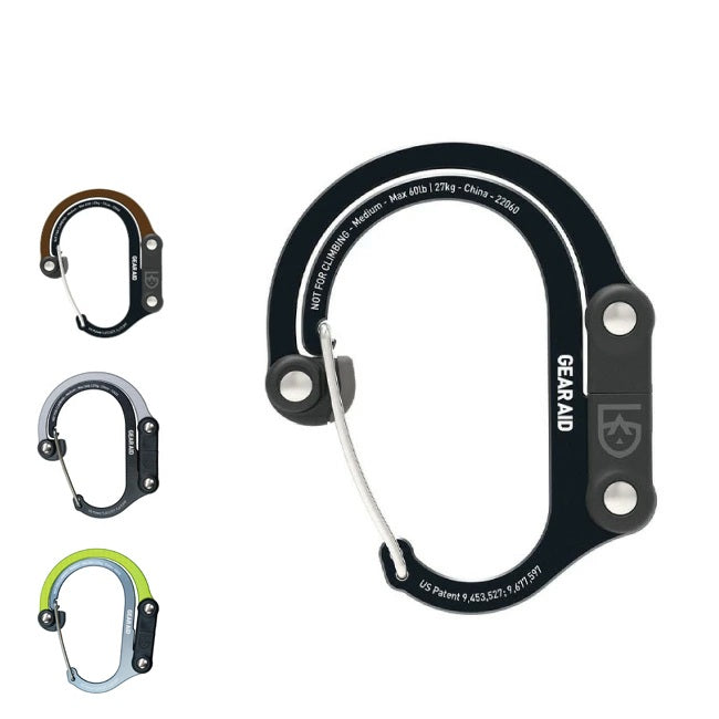 | フックを開けばジョイント部が360度回転し、S字フックや回転フックに早変わり。 材質は航空機にも使われる等質のアルミニウム合金製で、優れた耐久性を持ちます。 フックの先端にはグリップ性の高い素材を使用し、荷物を掛けやすい仕様です。 バッグハンガーなどに便利なミディアムサイズ。 【素材】 本体:アルミニウム合金、硬化プラスチック ゲート・ピン:スチール 【重量】 約57g 【耐荷重】 27kg(静止荷重) |