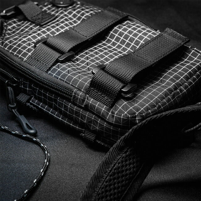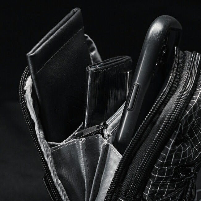 210Dナイロンの生地に超高分子ポリエチレン(UHMPWE)の糸を織り込み、リップストップグリッドにしています。