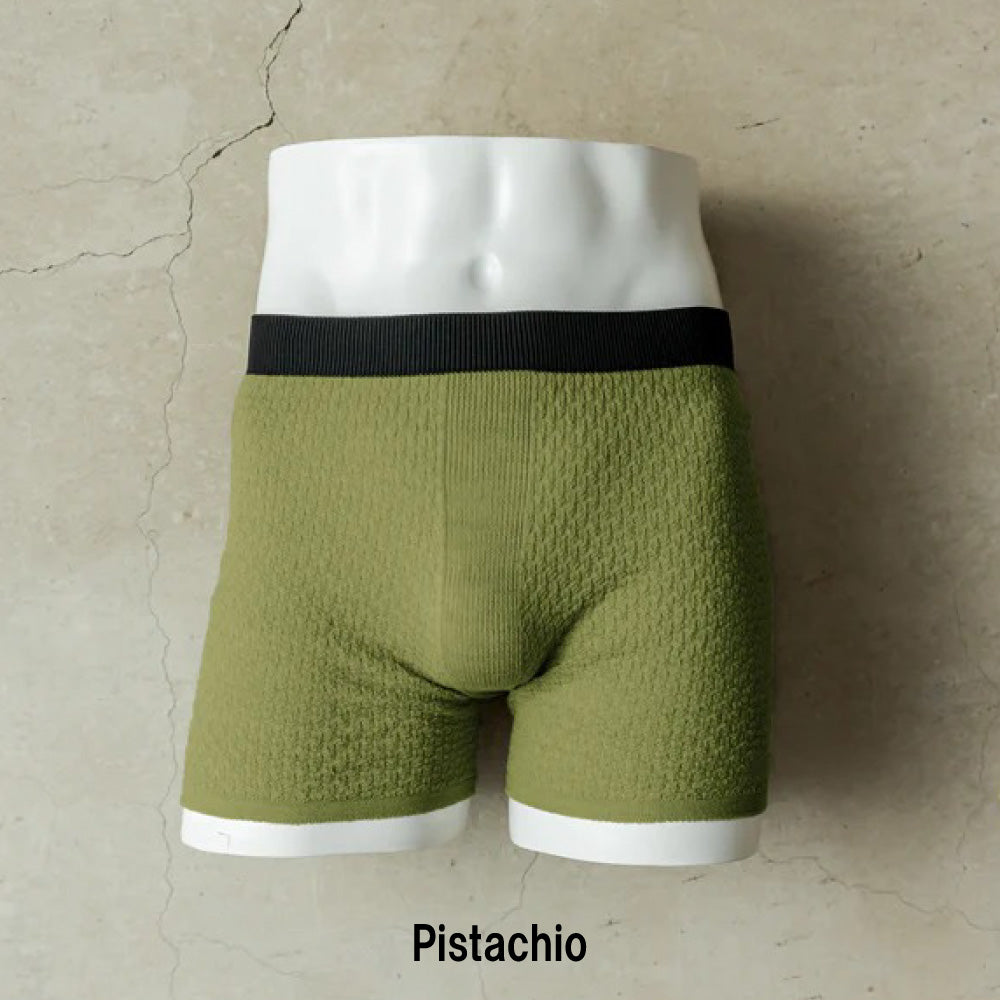 ベルト部分も生地全体と一体化した無縫製ニットを採用することで、従来のメリノ素材ボクサーショーツの「ベルト部分のゴムに臭いが発生する」という課題を解決し、「四日間はける」アンダーウェアとして誕生しました。