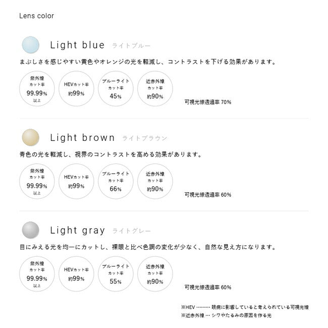 カラー | Crystal BK/L.BL Habana/L.GRY Lemon/L.BR Sakura/L.BL Smoke/L.BR |