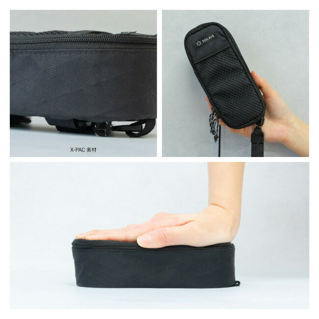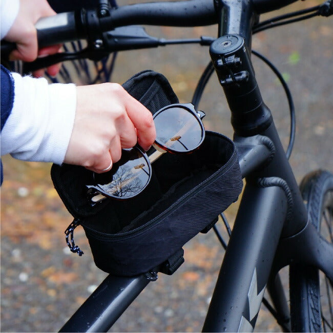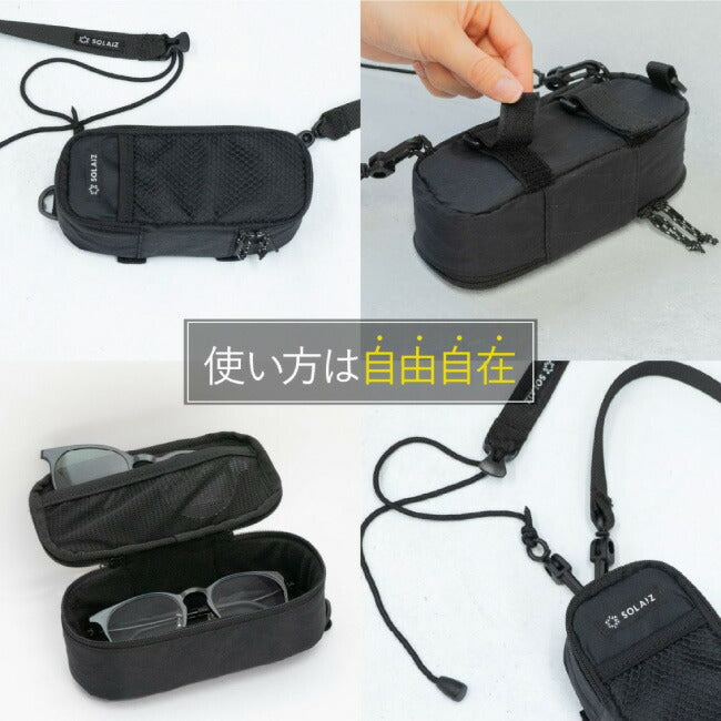 バッグにも自転車にも装着可能! 大切なメガネやサングラスをスマートに持ち運べるメガネサコッシュ。 従来のメガネケースの「出し入れが面倒」「かさばる」「デザインが野暮ったい」といったネガティブなイメージを払拭し、外に出して「魅せる」サコッシュ型ケースを開発しました。 サイクリング、キャンプ、登山、ドライブなど、自由自在に姿を変えて皆様のメガネをしっかり守ります。 コンパクトでありながら、360度芯で覆い、多少の重さがかかっても潰れにくく、衝撃から大切なメガネをしっかり保護します。 使用しているX-PACは軽量・強度・防水性に優れた高機能素材です。 一般的なナイロン製に比べ軽いですが、強度は十分あり、簡単に破ける心配はありません。 また、X-PACには高い防水性もあるため、突然の雨でも水の侵入を抑えます。 さらに内ポケット付きで、メガネ拭きや前掛けサングラスを収納することもできます。 身に着けることで、2度手間だったメガネの出し入れをスムーズに。 ※防水生地を使用していますが、シーム(縫い目)に防水処理を行っていないため、完全防水ではありません。 【重量】 111g(ロープ含む) 【素材】 表生地:X-PAC 裏生地:ポリエステル 面ファスナー:ナイロン メッシュ:ポリエステル ロープ:綿 ロープアジャスター:プラスチック |