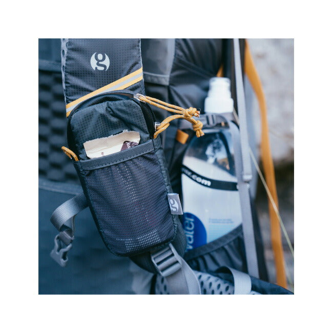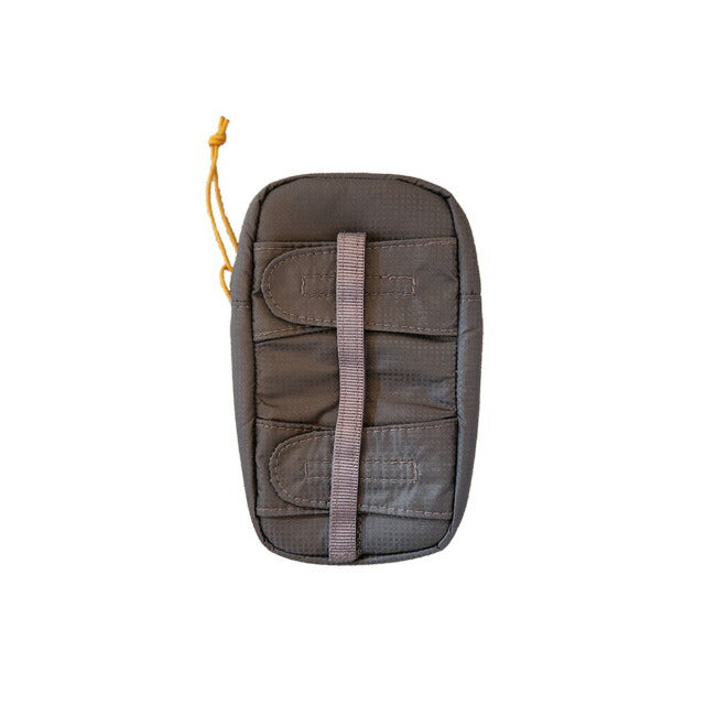 | ショルダーストラップに付ける超軽量止水ジッパーつきポケット スマートホンなど小物を入れるのに適しています。 【素材】 DWR加工70D Robic Nylon |