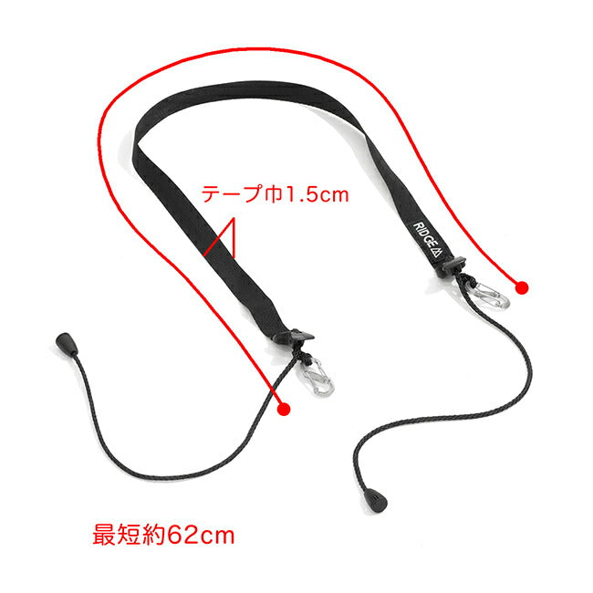 サイズ | テープ幅:15mm テープ長さ:最短約62cm〜最長約11.5cmの範囲で調整可能 ※メーカーサイズ参照 |