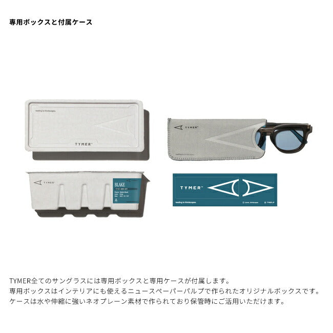 TYMER全てのサングラスには専用ボックスと専用ケースが付属します。