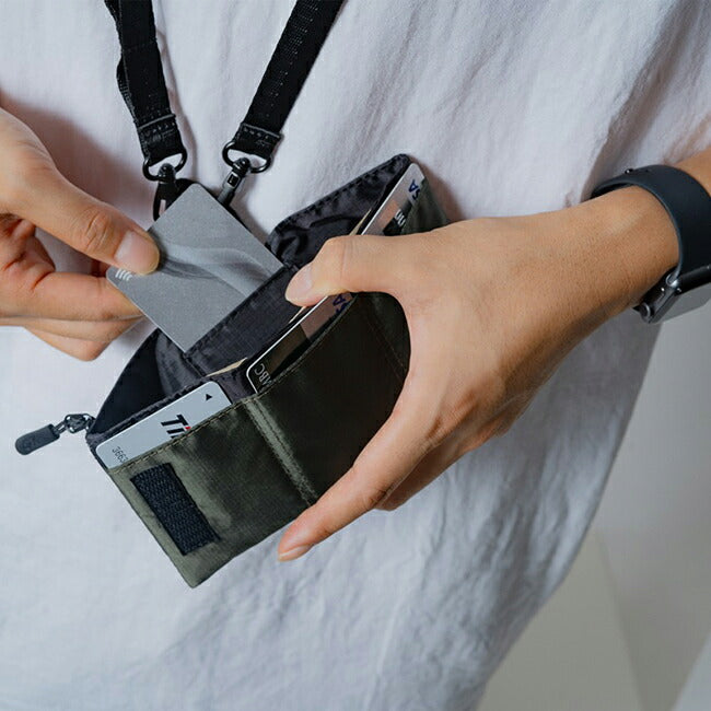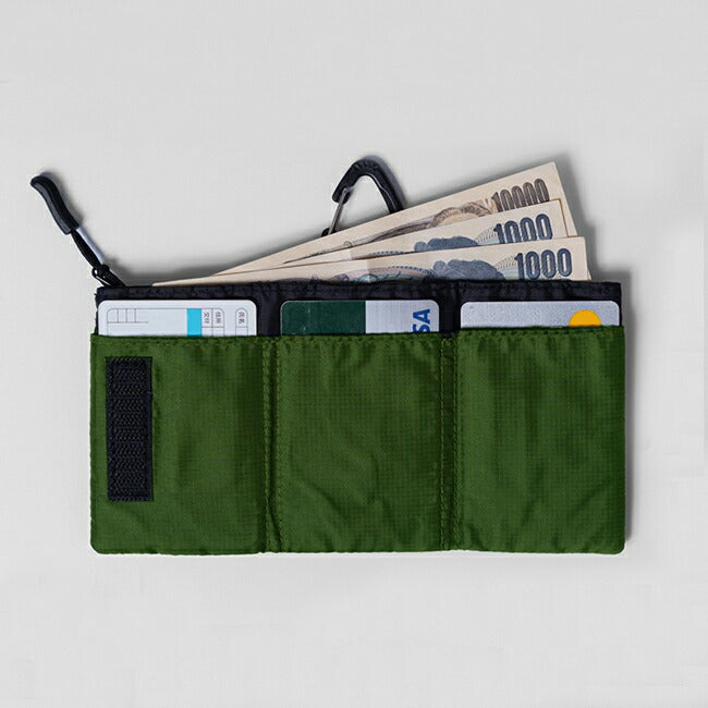 デイジーチェーン付きで拡張できる、超軽量お財布。 軽さと機能性を両立した、アウトドアシーンにぴったりなミニ財布。 デイジーチェーンのついたストラップも付属するため、カラビナで引っ掛ければ小物なども一緒に持ち運べます。 ●手のひらにおさまる超軽量お財布 財布本体は約25gの超軽量でとてもコンパクト。 ミニバッグやポケットの中にも入るので普段使いはもちろん、アウトドアや旅行にも最適です。 ●シーンに応じて使い分けられる 取り外し可能なショルダーストラップはデイジーチェーン付きのため、カラビナで引っ掛ければ他の荷物も一緒に持ち運べます。 また、財布本体にはフックが付属するため、ベルトループなどに付けることも可能です。 ●整理しやすいポケット お札収納が1カ所、カード収納が4カ所。 カード収納には各3枚ずつ、最大12枚のカードを収納できます。 外側には小銭入れに最適なファスナーポケット。 中のループに鍵を付けることも可能です。 【総重量】 約70g(うちショルダーストラップが45g) 【材質】 70Dナイロン(撥水加工) |