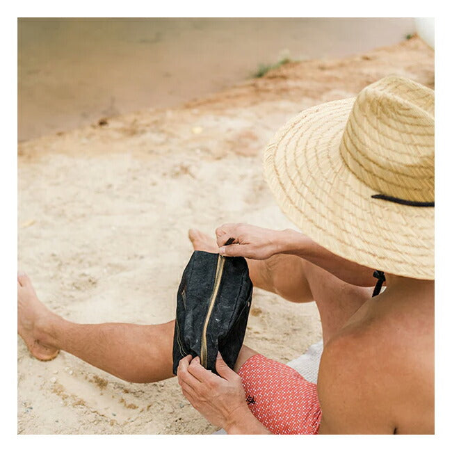 深みのある豊かなブルーのワックスコーティングを施した丈夫なデニム生地を使用し、ワックス加工されたキャンバス生地と丈夫なジッパークローザーが収納した荷物を守ります。