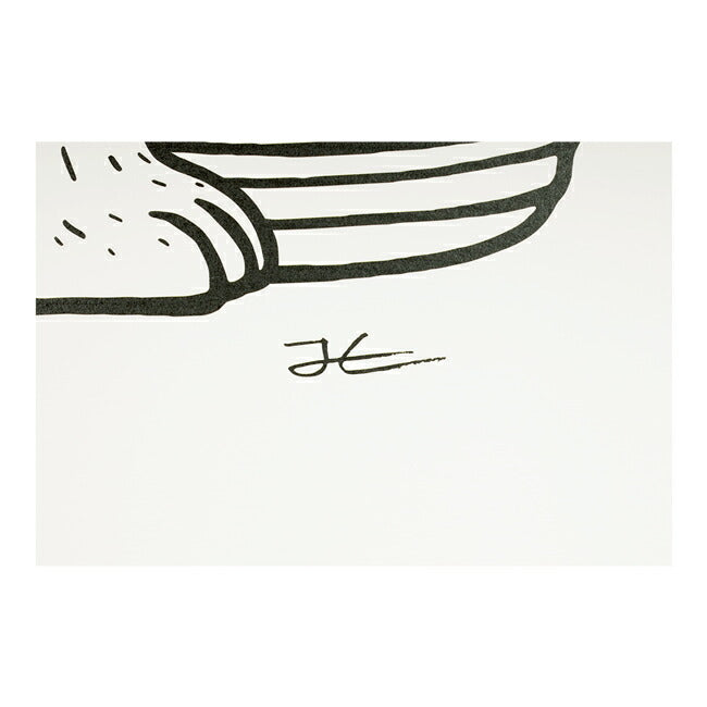 Jonas氏の代表的なBEARのキャラクターが「ほりにし」を持つというユーモアのある1枚です。 |