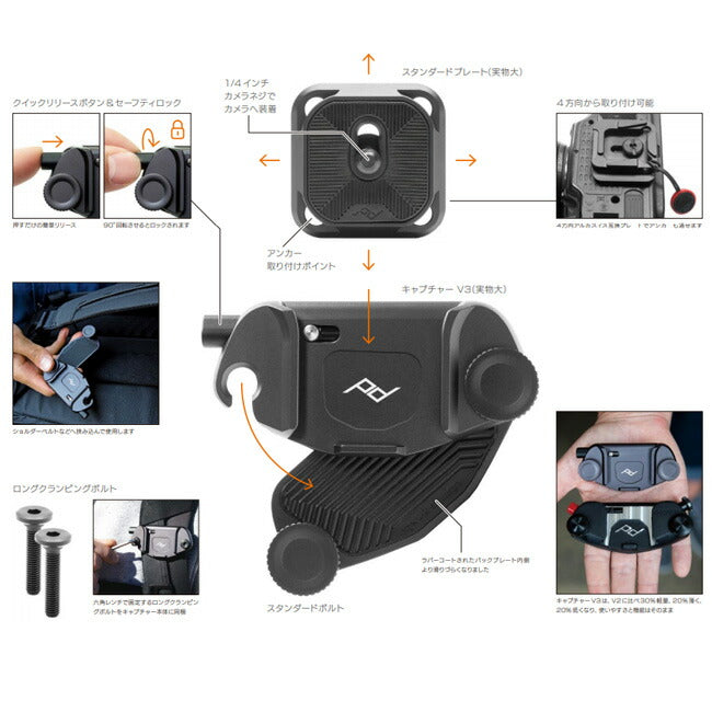 キャプチャーとスタンダードプレートのセット。 同梱物:スタンダードプレート、ロングクランピングボルト×2、4mm六角レンチ、マイクロファイバーポーチ |