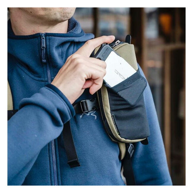 スナップは、バックパックのショルダーハーネスにつけるポーチ。