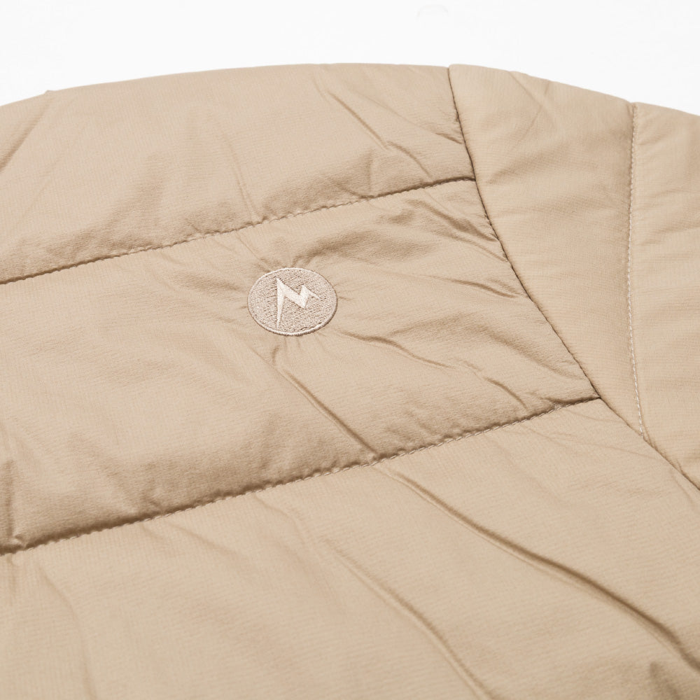 耐久はっ水性に優れた14デニールナイロン生地を表地に採用し、中綿にプリマロフトを封入した、ノーカラーパデッドジャケット。