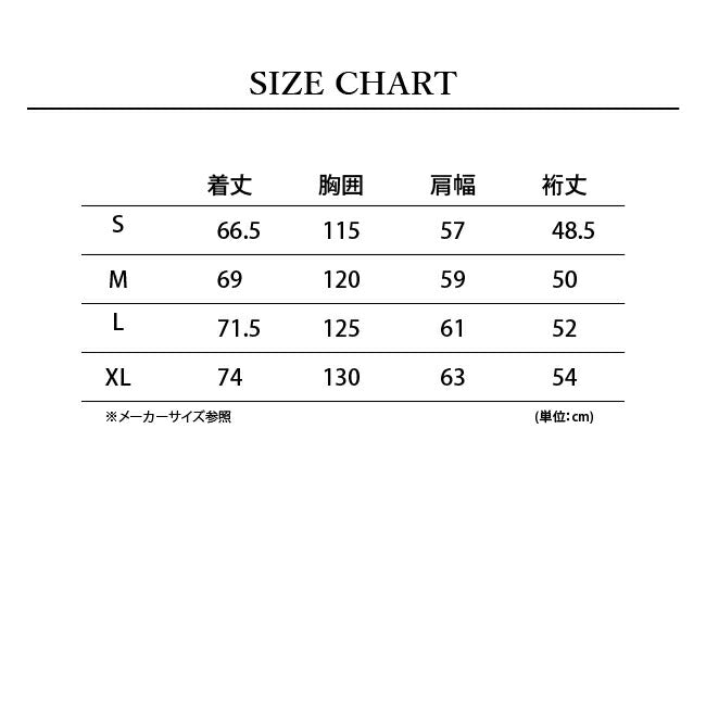 XL:着丈74 胸囲130 肩幅63 裄丈54
