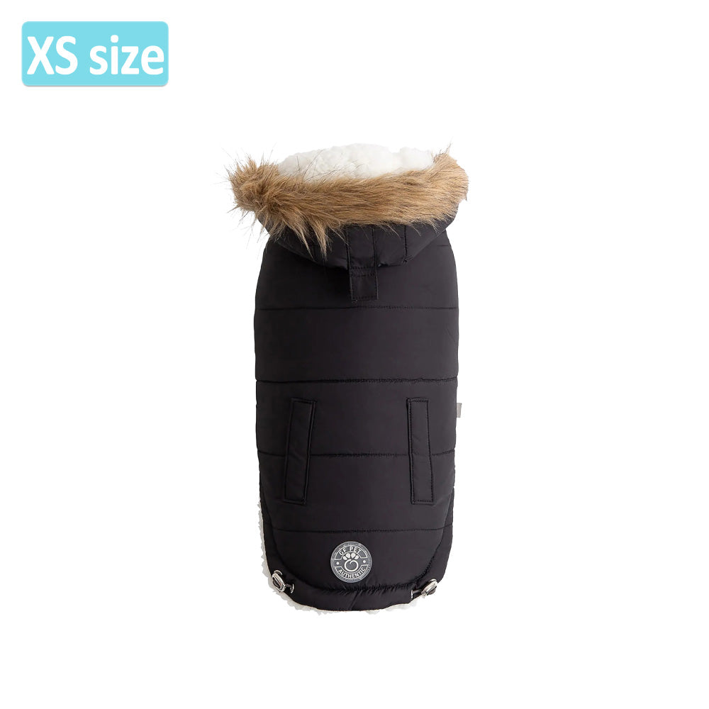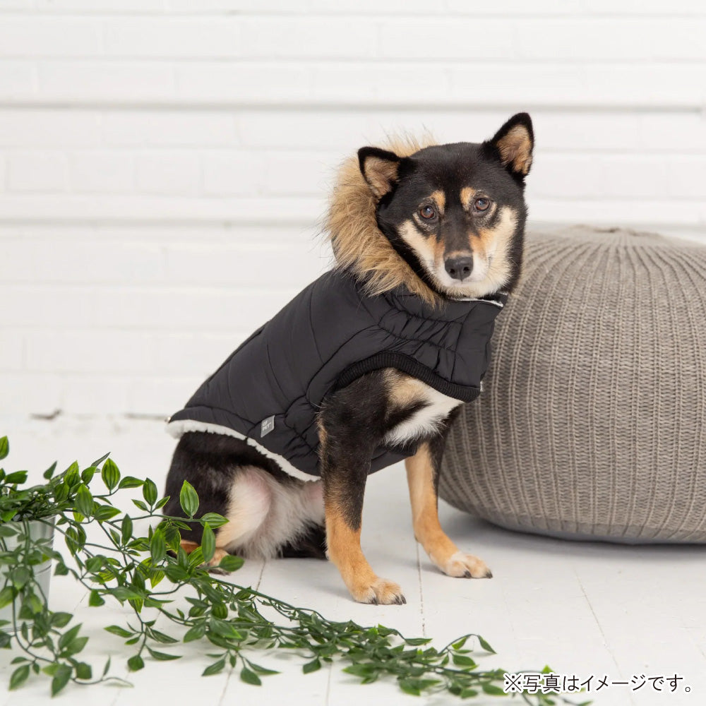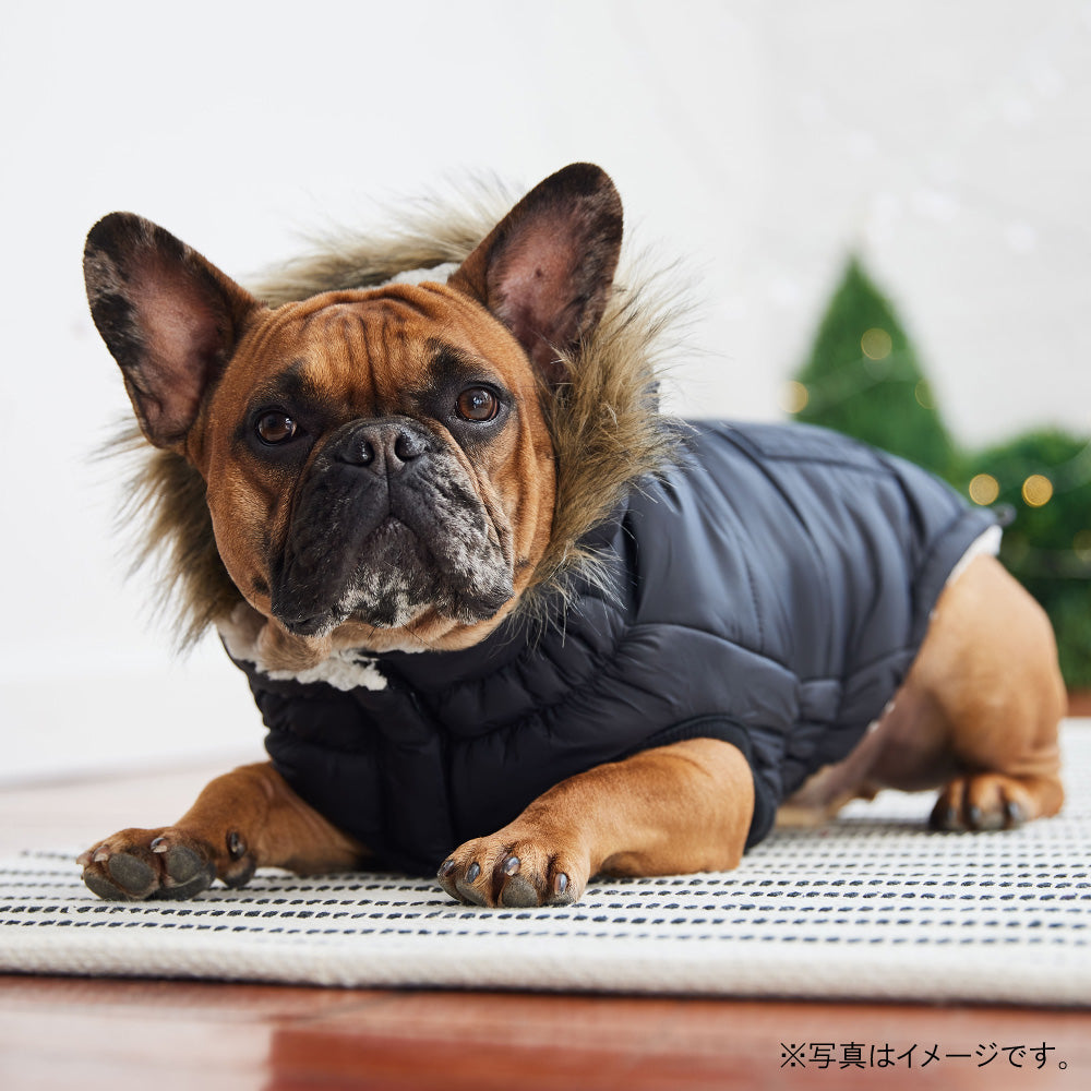 コートを犬の背中に乗せ、首と胸の部分のマジックテープ(面ファスナー)を留めるだけ。