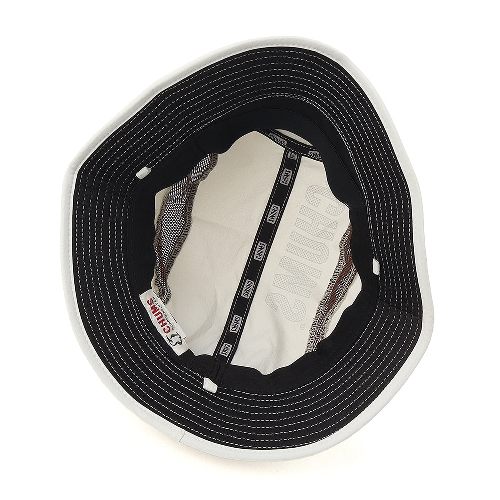 フロントにはブービーフェイスロゴの刺繍を、頭上にはCHUMSロゴプリントを大胆にレイアウト。