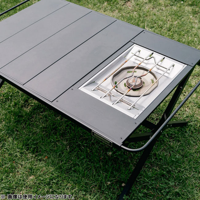 | 1分前後で組み立て可能なテーブルです! 汎用性高いローテーブル、ソロキャンから大人数まで利用できます。 ※こちらのページは、LOW TABLE(ローテーブル)単体の販売ページです。 FLAT FRAMEは、付属されておりません。 組み立てのかんたんさに加え、収納袋なども迷わず入れられる様に作られているので利便性もあります。 さらに約8kgの軽量テーブルなので持ち運びも便利、3〜4人用のサイズ感ですが、すっきりとしたデザインでソロキャンプから複数個並べることで大人数が使えるテーブルとしてもご利用いただけます。 テーブルの厚みは約23mmで2WAYSTANDのクランプも取り付け可能です。 別売りのFLAT FRAMEを取り付けるとフラットバーナーをセットする事が出来ます。 【ACCESSORIES】 ・取扱説明書 ・収納ケース ・本体フレーム ・天板(6枚) ・フック棒(2本) ・梁棒(1本) 【重量】 約8330g 【耐荷重】 20kg 【材質】 天板/フレーム:金属(アルミニウム) 収納ケース:ポリエステル |