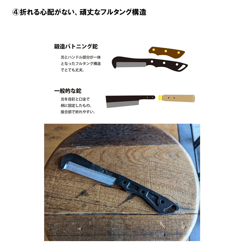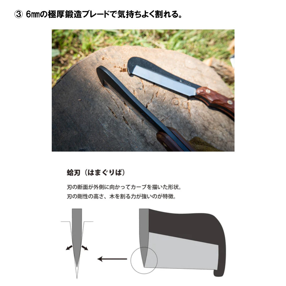 家族みんなで焚火を楽しめる、新発想のフルタング鉈(なた)。