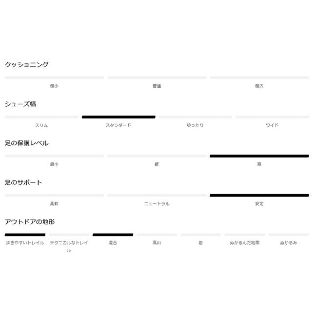 ベストセラーのX-ULTRAシリーズをベースに開発されたX-ULTRA 360 GORE-TEXは、全地形対応のContagripやGORE-TEXによる防水性をはじめ必要な機能をすべて備えた、アウトドアファンにお勧めのハイキングシューズ。 登山やあらゆるアドベンチャーに活躍します。 【特長】 ・安定性 Advanced Chassisが、自由な動きを確保しつつ、横方向の安定性を実現します。 ・グリップ アウトソールのAll Terrain Contagripがぬかるみでも優れたグリップを発揮し、コントロール性を高めて滑りを防ぎます。 ・環境に配慮 リサイクル素材を最大50%使用したアッパー、リサイクルされた電気ケーブルを使用したミッドソール、より環境に配慮したパッケージ。 【特徴】 ・アウトソール:All Terrain Contagrip SalomonのAll Terrain Contagripは文字通りあらゆる表面に対応する設計。 濡れた路面や乾いた路面、岩場や泥道など、あらゆるコンディションで高い耐久性と安定性を発揮します。 ・ミッドソール:EnergyCell ハイパフォーマンスEVAフォームが、衝撃を緩和します。 ・シャーシ:Advanced Chassis Advanced Chassisはアウトソールに埋め込まれた成形インサート。 力強い側面からのサポートと安心できる保護性能を提供するとともに、動きやすさと優れた柔軟性を発揮します。 ・アッパー素材:合成アッパー アウトドアアクティビティに適した優れた耐久性と保護力を提供する合成アッパー素材。 ・ライニング素材:テキスタイルライニング 快適な、柔らかく通気性に優れたライニング。 ・アッパー構造:レースポケット Quicklaceレーシングシステムを簡単に収納できるポケット。 ・アッパー構造 プロテクティブトゥキャップ ・アッパー構造:SensiFit SensiFitはミッドソールからレーシングシステムまで足全体を優しく包み、オーダーメイドのようなフィット感を実現。 足がしっかり固定され、履き心地抜群です。 ・アッパー構造:ソールと一体化したアッパー スムーズでグローブのようなフィット感を提供する、スティッチフリーのアッパー構造。 ・アッパー構造:プロテクティブマッドガード フットベース周囲を包む、レザーや合成素材、ラバー製のガードで、足の側面および中央部分を保護します。 ・ソックライナー:成型OrthoLiteソックライナー 足の形状にマッチした成型OrthoLiteインソールが優れたクッション性と通気性、耐久性をもたらし、心地よさとパフォーマンスを高めています。 ・レーシングシステム:Quicklace 細くて丈夫な紐を1回で締めあげることができます。 着脱しやすいデザイン。 ・メンブレン:GORE-TEX GORE-TEXは、外部の湿気をシャットアウトし、汗による蒸れも防止します。 ・サステナビリティ:PFC-ecフリー 環境への影響を減らすため、SalomonのGORE-TEX製品の撥水加工はPFC不使用です。 ・サステナビリティ:リサイクル素材 ペットボトルや廃棄物資源などのリサイクル素材から作られたもの 【素材】 アッパー:合成素材/テキスタイル アウトソール:ラバー ライナー:テキスタイル インソール:テキスタイル |