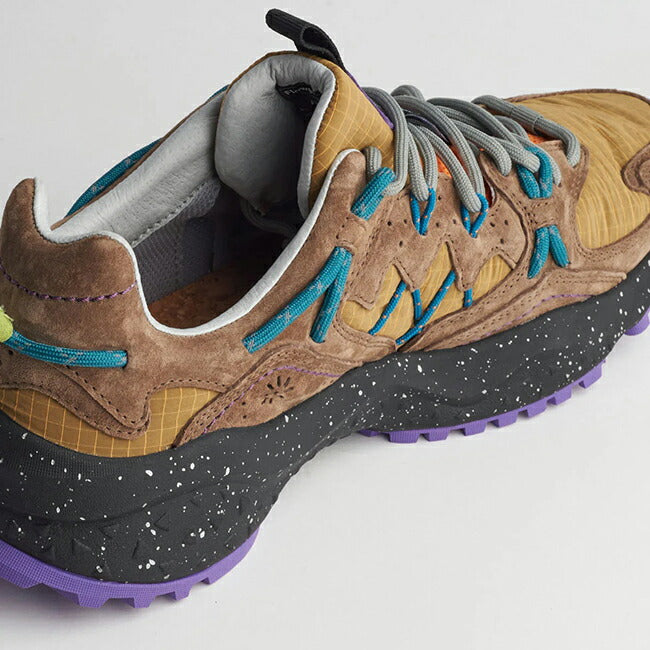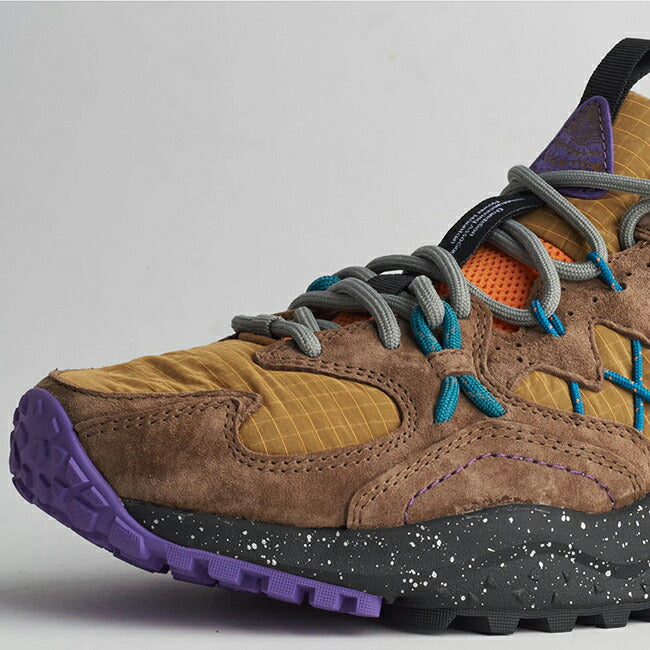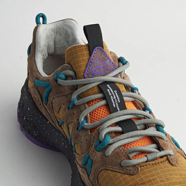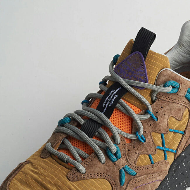 太さの異なる2種類のレースを使用した無骨なデザインが特徴の「YAMABUSHI」。 ボディーにはナイロンを使用し、オーバーレイのレザーと組み合わせることで、足のブレによる衝撃を効果的に軽減する構造となっています。 はるか昔から穏やかに暮らし、そして谷を渡り、山々を駈ける「山伏」。 そんな日本文化に敬意を表したプロダクトです。 新ソールは接地面にフロント、ミッド、リアの3つのセクションに異なるラバーを配し、各セクションに独自の機能を搭載しています。 ・フロントセクション 高密度の砂利のようなトレッドパターンで設計されており、優れた摩擦とグリップ力を発揮し、蹴り出しやスプリント時の推進力を高めます。 ・ミッドセクション 空洞になっているパーツに滑り止め溝を組み込み、スムーズなトランジションを実現。 これにより、十分なトラクションを確保しながら、ソール重量を大幅に軽減し、柔軟性を持たせています。 ・リアセクション 久性と安定性を高めるために、最小限のトレッドパターンを備えた厚手のゴムを採用しています。 着地時の衝撃を効果的に吸収し、ランナーの足と関節を保護し、衝撃時のストレスから軽減します。 【素材】 ピッグスエード+ナイロン 【底材】 EVA+ラバー ライニングには抗菌・防臭機能があるMicroban社製の素材を使用、インソールにはコルク素材を使用し吸湿性に優れています。 |