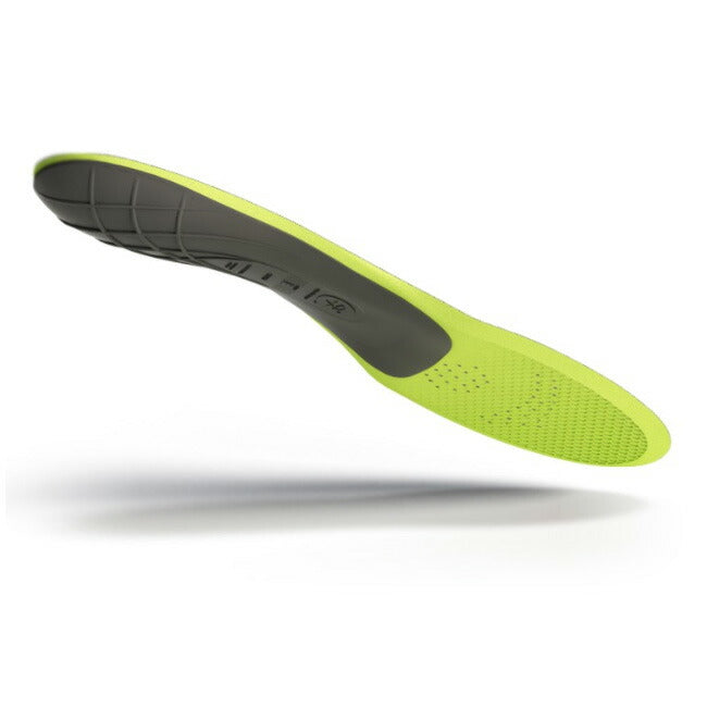 | スーパーフィートカーボンは、スタビライザーキャップに炭素繊維(カーボン)配合の硬質超軽量素材を採用し、耐久性と薄さ・軽さを向上させた革新的なハイパフォーマンスモデルです。 バイオメカニクスに基づいた設計で開発されたスーパーフィートカーボンは、軽いだけでなく、フィット感を向上させ、スパイクシューズのようなタイトフィットのシューズにも着用が可能です。 1.ヒールカップ バイオメカニクスに基づき設計されたヒールカップは足を安定させ、足本来の衝撃吸収が行えるようサポートします。 2.バイオメカニクスに基づいた設計構造 かさばらない形状が、足元の安定、足首や膝へのストレスを軽減します。 3.軽量化と通気性の向上 中~前足部に通気口を空け、重量を軽減し、通気性を向上させます。 4.幅広なトップカバー 幅広い分野の靴に対応すべく、トップカバーを広くしています。 5.天然コーティング剤による処理 臭気の原因となるバクテリアの繁殖を抑制します。 6.カーボンファイバースタビライザーキャップ カーボンファイバー配合の強化スタビライザーキャップはタイトフィットなインソールに対して、矯正力とサポートを提供します。 7.薄型デザイン スーパーフィートインソールの中で最も薄いインソール。 8.超軽量で高密度なフォーム素材 硬く、頑丈な高密度なフォーム材はタイトなシューズに対して長時間履き続けられる快適性をもたらします。 9.面取りされたつま先部分 面取りが施されているので、タイトなシューズにもきれいに靴に収まることができます。 |