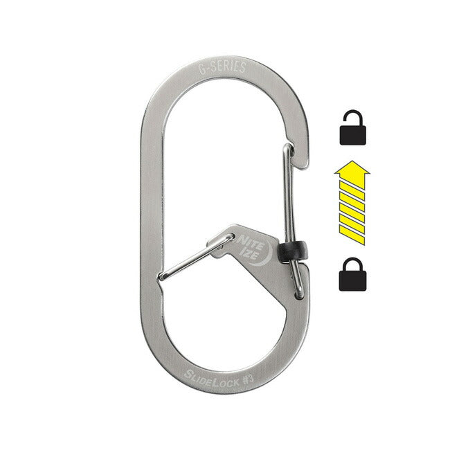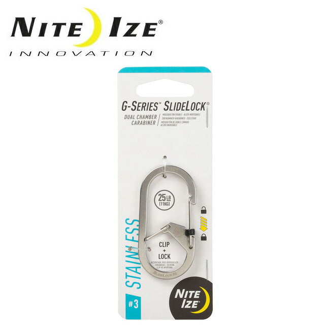 | 人気のGカラビナーにロック機能が付き、より厚みのあるデザインになって耐荷重が上がりました。 ※ステンレスシルバーカラーのみの展開となります。 (ブラックはございません) 【重量】16g 【耐荷重】11kg 【材質】スチール、プラスチック |