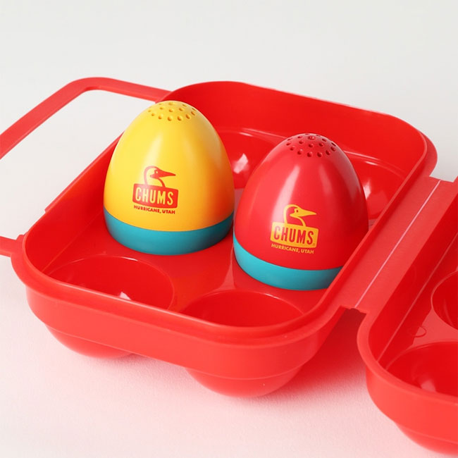 キャンプ料理でも欠かせない存在の「卵」の収納ケースと卵型のスパイスシェイカー(2個セット)。