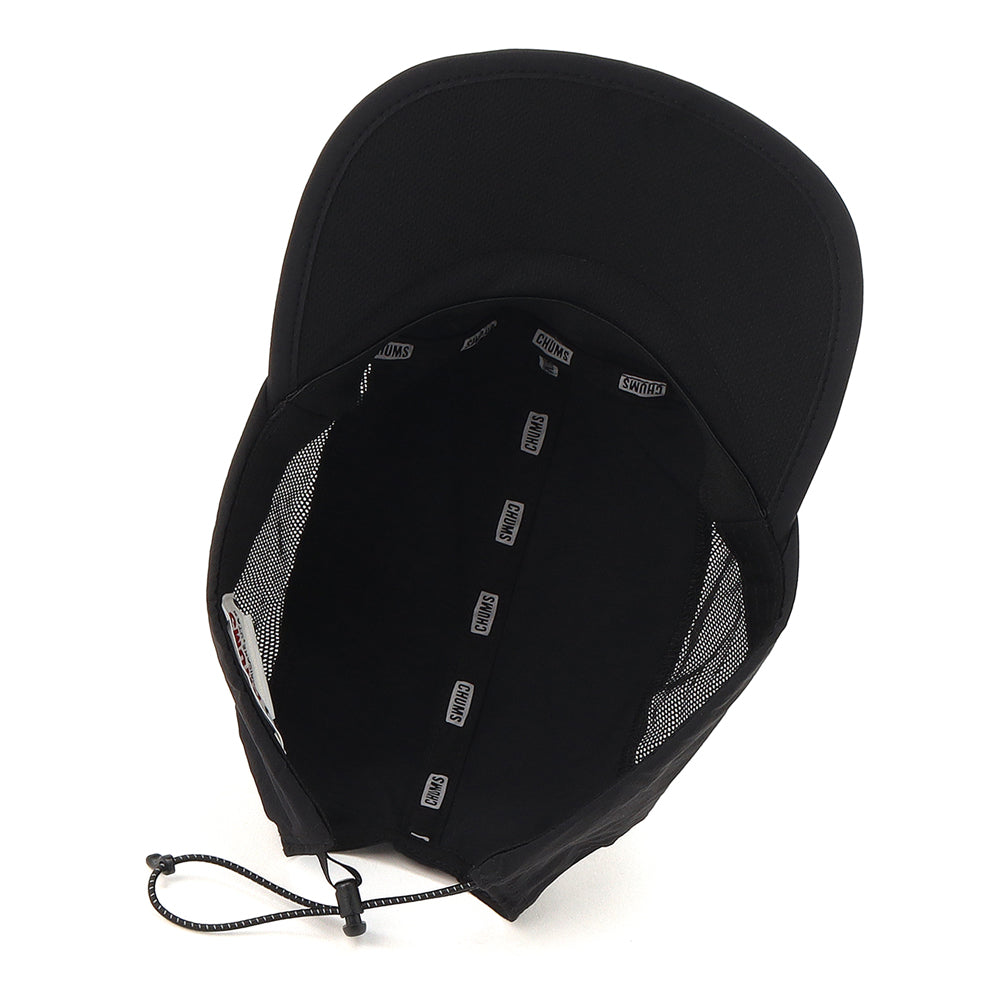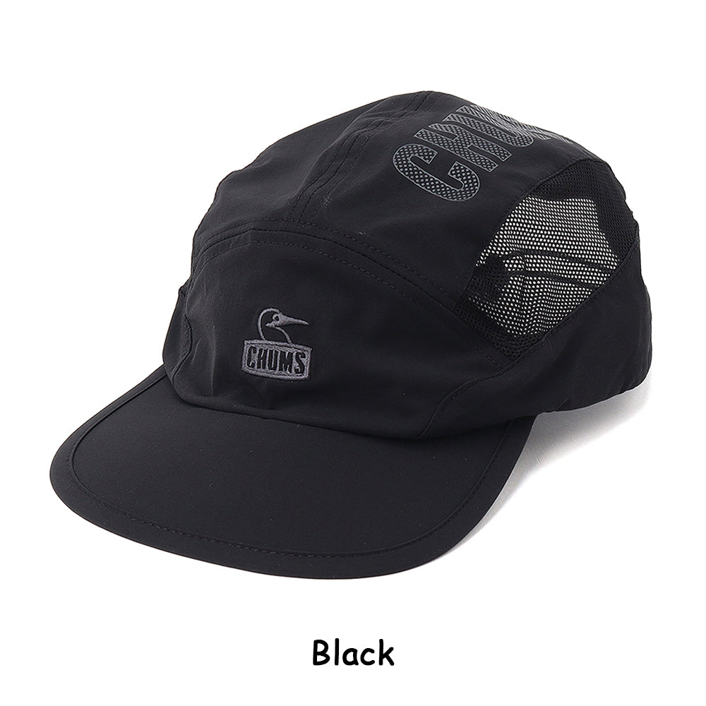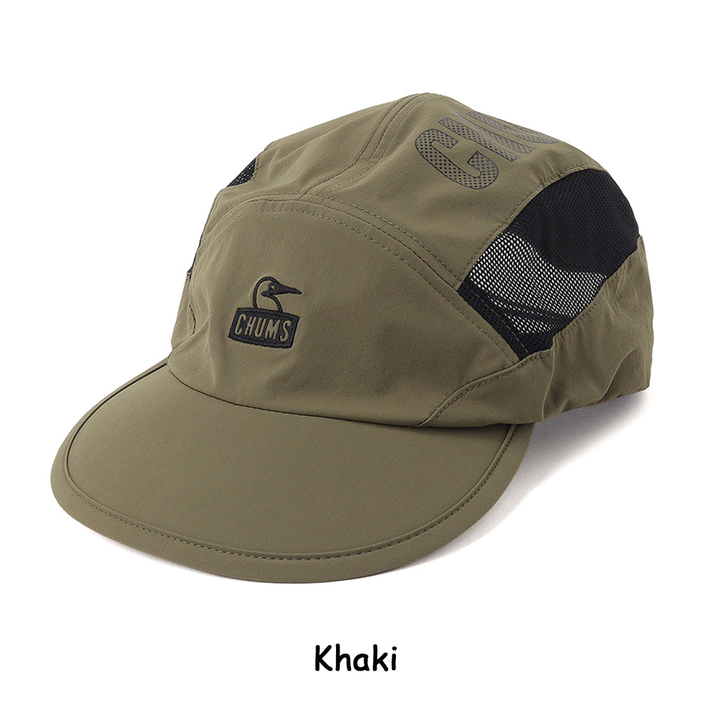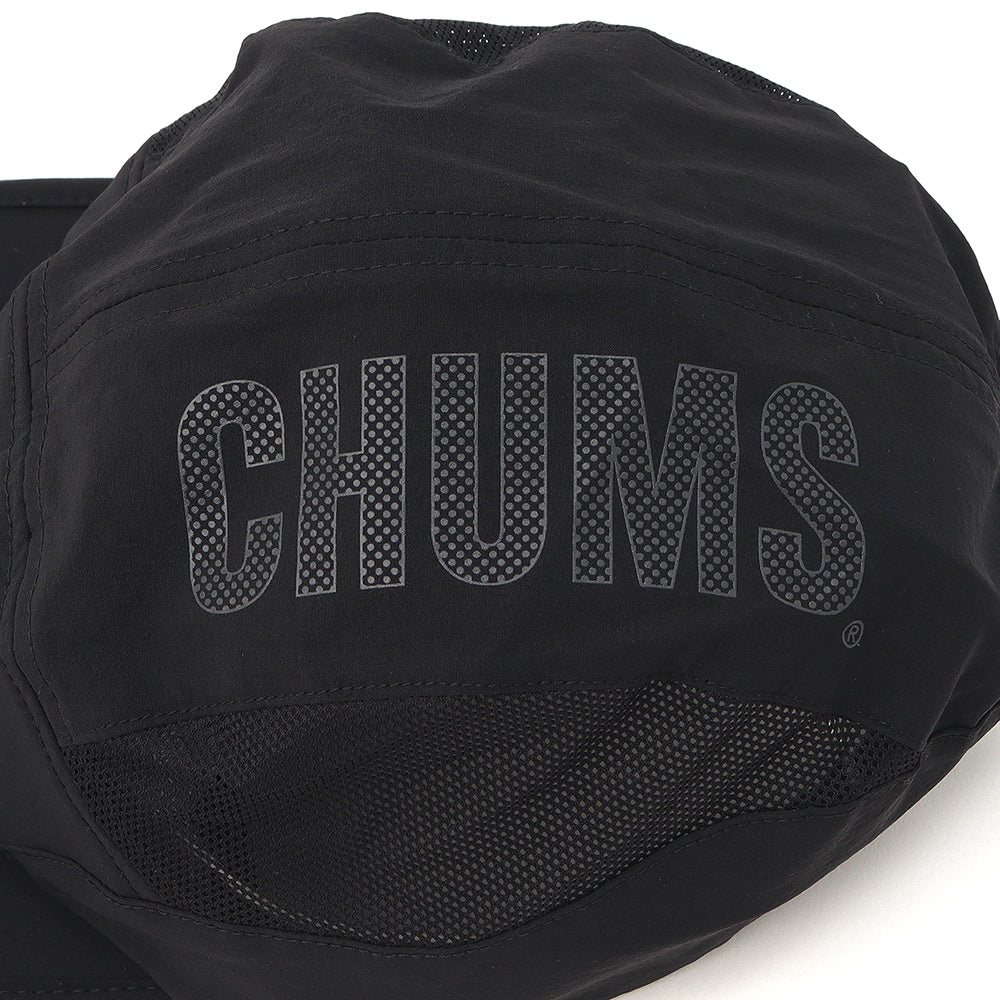 フロントにはブービーフェイスロゴの刺繍を、頭上にはCHUMSロゴプリントを大胆にレイアウト。