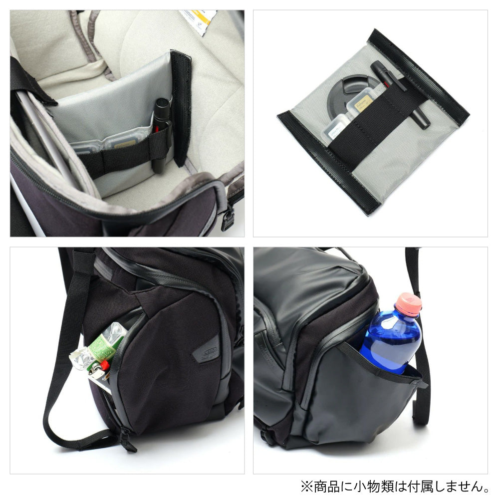 カメラ機材とビジネスアイテムを分けて収納できる2ルーム構造。
