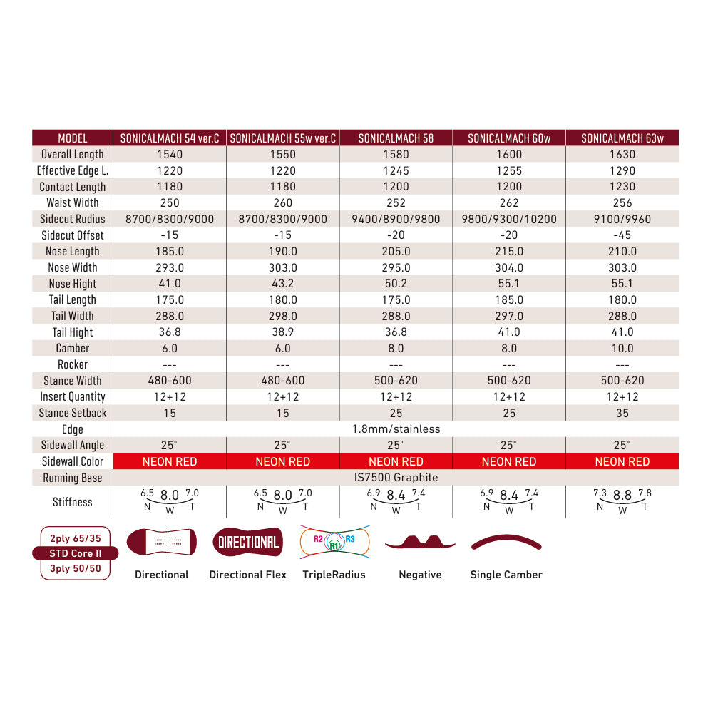 高速カーヴィングの中でのラン&トリックをコンセプトとする、154ver.C,155w ver.C,158,160w。