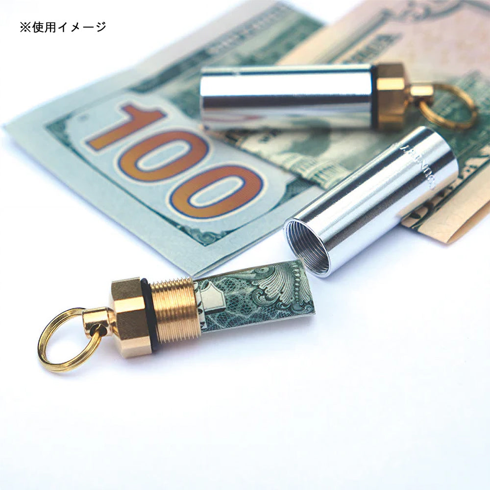 近くにATMが無かったり不意に停電になった時、最も必要な現金をコンパクトに折り畳んで携帯できるキーホルダー型防水カプセルです。
