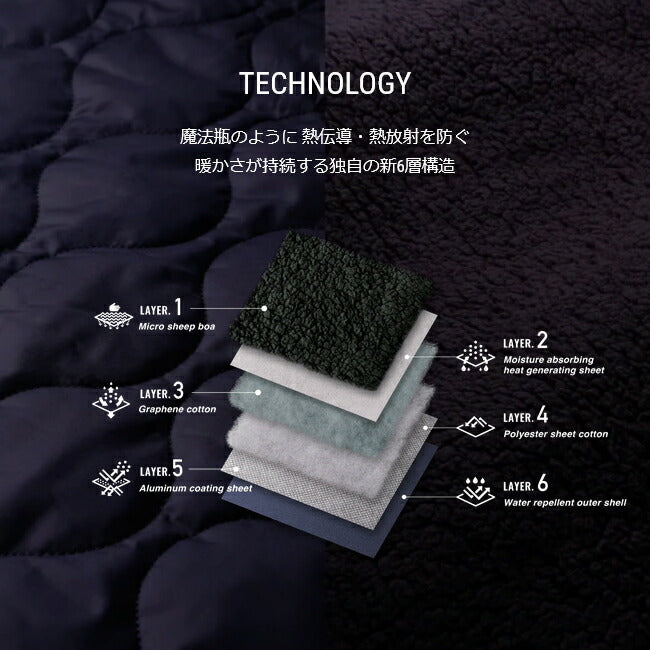 魔法瓶の構造から着想を得た独自の6層構造でできているブランケット「魔法瓶ブランケットLUGH(ルー)」は、触れた瞬間から暖かさが長時間持続。