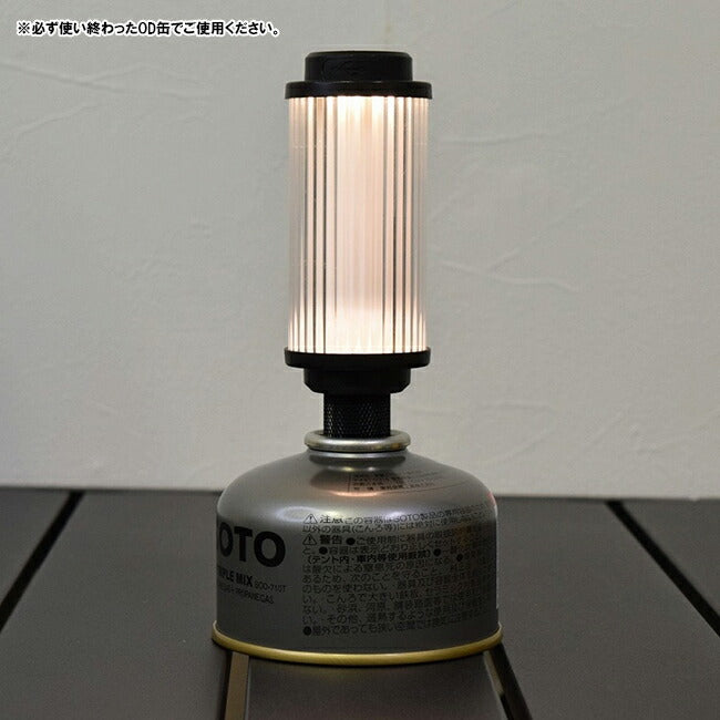 1/4インチメスネジを採用しているLEDライトや扇風機をOD缶に接続することが可能。