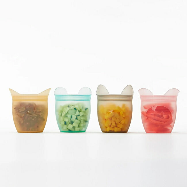 環境に配慮して誕生した耐久性に優れたシリコーン製の保存容器。 かわいらしい動物モチーフの「ベビースナック」の4点セットです。 箱入りなので出産祝いや、誕生日のプレゼントにも嬉しいギフトです。 ベビースナックは、お子様のおやつ入れにとっても便利。 BPA、鉛、フタル酸エステル、PVCを使用しておらず、アレルギーを引き起こしにくい、安全性の高い素材を使用していいるので、安心してお子様にもご使用いただけます。 もちろん、子供だけでなく、大人のスナックタイムにもピッタリです。 かわいい動物モチーフで、おやつ時間がもっと楽しくなりますね。 【重量】 キャット:50g ドッグ、ピッグ、ベアー:60g 【容量】 118ml 【素材】 シリコーンゴム |