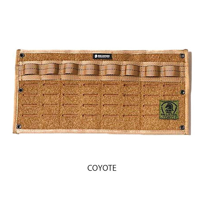 ユーザー様の創意工夫で様々な使い方が出来るプレートになります。 推奨用途の1つとして縦横サイズをシェルコン25の側面サイズとしておりますので、背面6か所の三角パーツの1辺を開け(ベルクロで開閉)中にネオジム磁石を入れていただくとシェルコンの側面に貼り付け可能です。 ※磁石はお客様サイドでご用意ください。 プレート上部のデイジーチェーンやベルクロのパルスホールを利用してシェラカップやポーチ類、小物などをぶら下げたり取り付けられます。 【付属パーツ】 ストレッチコード1本 ストッパー1個 100mmベルクロ1枚 【MATERIAL】 表側:ポリエステル 裏面(ベルクロ):ナイロン |