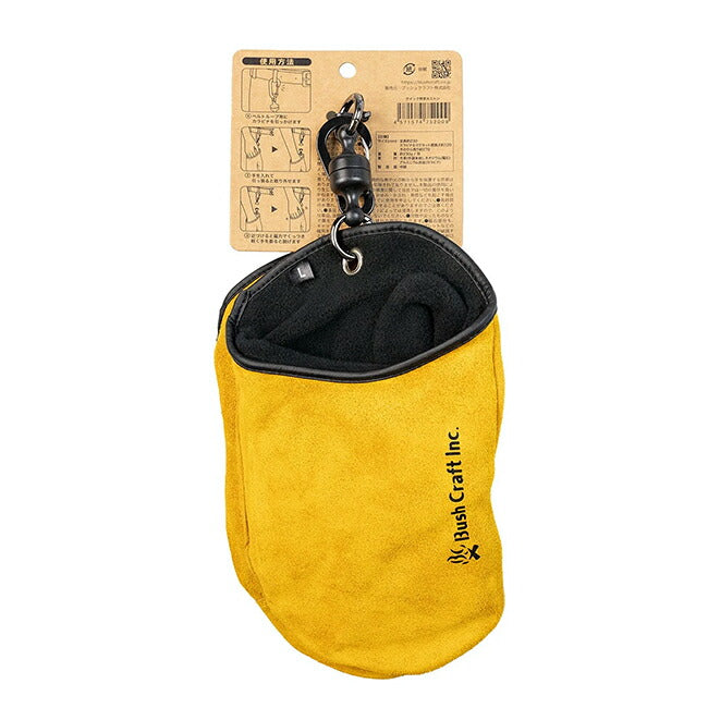 耐熱性に優れたやわらかな革製ミトンです。 マグネット式のカラビナをベルトやベルトループに固定できるため、片手で簡単に着脱ができ、放置を防げます。 従来型より中綿が厚手になり、断熱性・防寒性が向上しています。 【重量】 230g/双 【材質】 本体:牛革 磁石:ネオジウム カラビナ:アルミニウム合金 【製品取扱上のご注意】 ※本来の用途以外には使用しないでください。 ※焚き火台やアルコールストーブ缶、鍋など磁力に反応する金属製品の近くで使用する際は、磁石がくっつく事により思わぬけがや事故を招く場合がありますのでご注意ください。 ※本製品は、一時的な熱や火の粉から手を保護する効果はありますが、耐熱処理等は一切施されておりません。 本製品の使用により生じたけがや事故、その他の損害に関して当社では一切の責任を負いかねます。 ※体質によっては、かゆみ・かぶれ・発疹などを起こす場合があります。 異常を感じたらすぐに使用を中止してください。 ※長時間の水濡れ、発汗等により色落ちすることがありますのでご注意ください。 ※薬品(酸・アルカリなど)によっては浸透しますので、このような薬品、油類、溶剤には使用しないでください。 ※刃物や尖ったものなどで傷をつけないでください。 破れの原因になります。 ※磁石部分を、キャッシュカードなどの磁気カード、コンピュータやタブレットなどの磁気を利用しているメディアに近づけないでください。 データが破損する場合があります。 ※使用後は汚れや水分を拭き取り、高温多湿、直射日光を避け、小さなお子様の手の届かないところに保管してください。 ※革の色には個体差があります。 ※低温下で保管すると、革に含まれる油分が浮き出して白く見えることがありますが、温めると元に戻ります。 |