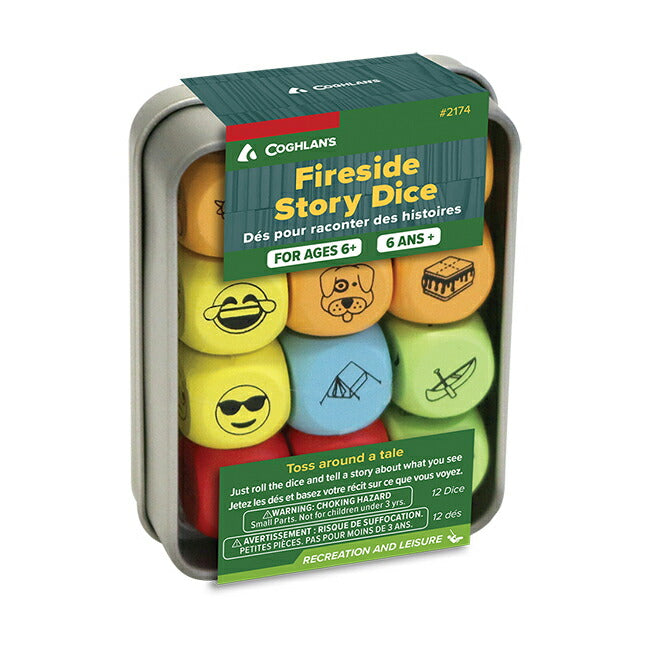 ファイヤーサイド ストーリーダイス 2174は12のサイコロ、5つのテーマのアクションがあるダイスゲームです。 合計72の絵の組み合わせがありますので、キャンプやお出かけ先でクリエイティブに遊んでください。 |