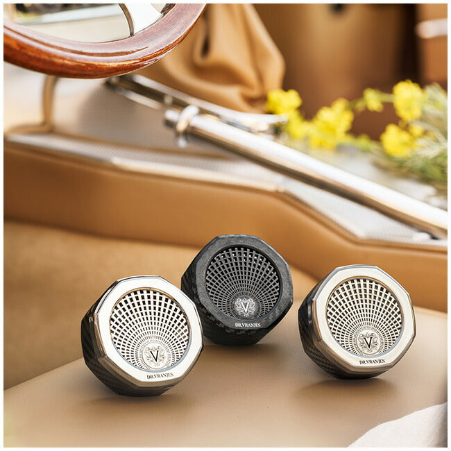 フィレンツェのシンボルでもあるドゥオモ(大聖堂)の美しい八角形のクーポラ(丸屋根)がモチーフになったカーフレグランスアクセサリー。 洗練されたデザインが、上質な車内空間と特別な時間を演出します。 別売りのリフィルをセットし、ディスペンサークリップを、カーエアコンの吹き出し口に取り付けてご使用ください。 ディスペンサーは、カーボンファイバー・ニッケル・クロームの3つのフィニッシングをご用意。 お車の内装あわせてお選びください。 ディスペンサーの右にあるレバーで、オン・オフ、香りの強さを調整できます。 ※別売りのリフィルをセットしてご使用ください。 ※カーエアコンの吹き出し口の形状によっては、ディスペンサーを取り付けられない場合があります。 ※カーパルファムをカーエアコンの吹き出し口に装着すると、エアコンの風向きを調整する羽の向きを調整できない場合があります。 ※小さなお子様やペットの触れない場所で、ご使用・保管ください。 ※リフィルを分解しないでください。 ※クルマを運転中にディスペンサーやリフィルの取り付けや交換をしないでください。 【ご使用方法】 1.ディスペンサー上部ロックリングを、カチッと音がするまで反時計回りに回し開けてください。 2.リフィルを覆っている保護フィルムをとり外し、リフィルのブランドマーク下部のへこみ部分とディスペンサー内部の出っ張りがぴたりとあうようにセットしてください。 3.リフィルをセットしたらディスペンサー上部のロックリングをカチッと音がするまで時計回りに回し、しっかりと閉じればセット完了です。 4.ディスペンサーのクリップ部分をカーエアコンの吹き出し口に取り付けてご使用ください。 ディスペンサーの右にあるレバーで、3段階に香りの強さを調整できます。 |