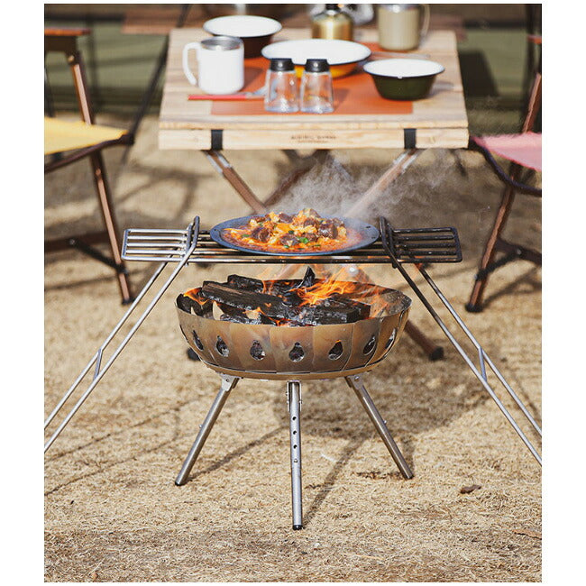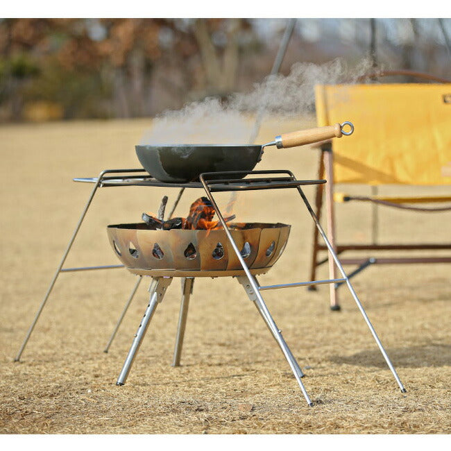 アイアンシェルフは、焚き火台と共に料理を楽しむことができるグリルスタンドとして、3つのフレームから構成され、簡潔でシンプルさが特徴の製品です。 設置・解体が簡単で、重たい調理道具やモノを乗せても、安定的に固定でき、ご使用頂けます。 グリルスタンドだけでなく、上部グリルのみの使用も可能で、物置用シェルフ等としても活用できます。 IRON SHELFでクラシックかつアナログ的なキャンプをお楽しみください! ※溶接跡が目に見える場合があります。商品説明をご確認・ご了承のうえご注文ください。 【重さ】3.3kg 【素材】Stainless Steel 204 |