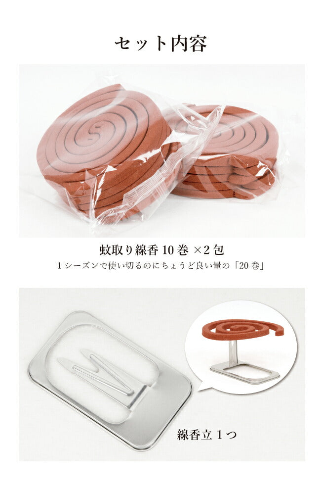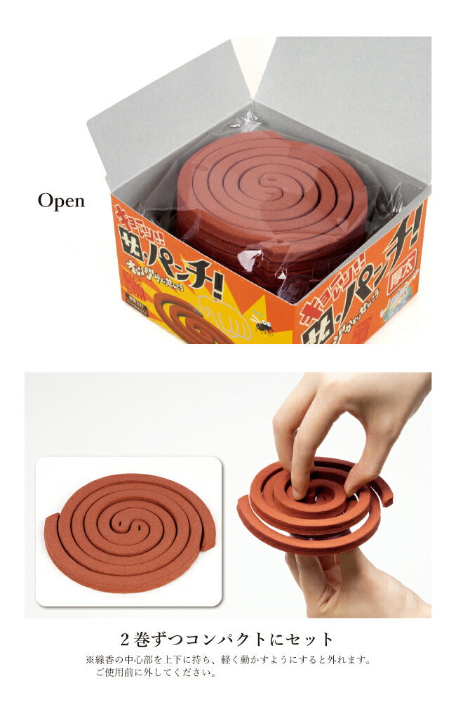 蚊取り線香発祥の地とされる和歌山県有田市で、明治18年創業の老舗メーカー「ライオンケミカル」にお願いして、オレンジかとりせんこう「ザ・パンチ」を開発いたしました。 ・蚊取り線香といえば『白い煙』というイメージがあると思いますが、実は煙だけで蚊を撃退している訳ではありません。 線香の火がついている1センチ程手前の部分から、熱で気化された有効成分が発生。 それが空気中に揮散されて蚊を殺虫・忌避しているのです。 つまり線香の太さが約2倍(※ライオンケミカル社従来品比)の『ザ・パンチ』は、効果がより拡散しやすく、その効果は最大で約5時間持続(※環境により持続時間は変動)します。 ・国内でも数少ない「屋外用蚊取り線香」として、厚生労働省の『防除用医薬部外品』承認済み。 ・人や環境に害を与えない有効成分「メトフルトリン」など、日本製の成分を使用。 ・屋外で6m(半径3m×2)のバリアで、蚊成虫の忌避効果が公的に認められた屋外用の蚊取り線香なので、アウトドアでの使用に最適です。 ・1シーズンで使い切るのにちょうど良い量の「20巻入」 ライオンケミカルとは・・・ 蚊取り線香発祥の地とされる和歌山県有田市で明治18年創業。 蚊取り線香、洗浄剤、消臭剤、入浴剤などの日用商品を製造販売している老舗メーカーです。 同社は、世界初の蚊取線香自動製造機を昭和18年に発明、量産化に成功し、現状のプレス型渦巻蚊取り線香が世界の家庭で感染症予防商品として広く使用されるようになりました。 【効果効能】 蚊成虫の駆除又は忌避 【内容量】 20巻(線香立付) ※使用中は線香立自体も熱くなるため、その下にも陶器や金属製の皿を敷いてお使いください。 【用法及び用量】 屋内(蚊成虫の駆除)、屋外(蚊成虫の忌避)で本品の1巻の一端に点火して燻煙する。 【薬事分類】 防除用医薬部外品 【有効成分】 メトフルトリン(ピレスロイド系)0.03% 【その他成分】 デヒドロ酢酸Na、着色剤、植物混合粉、その他3成分 【生産国】 日本 |