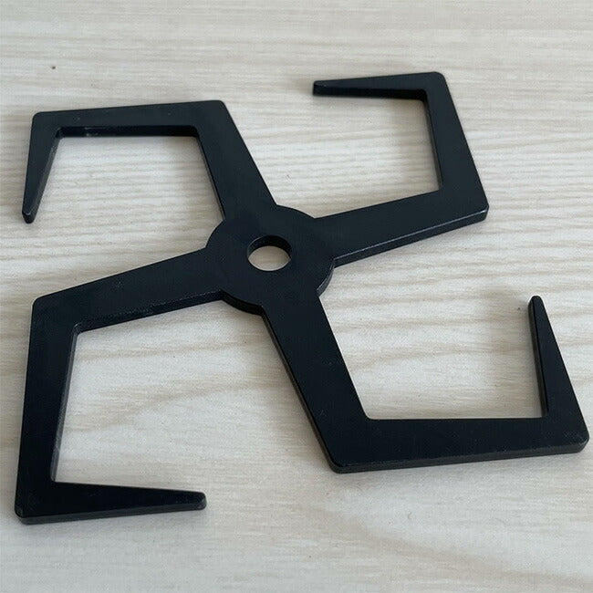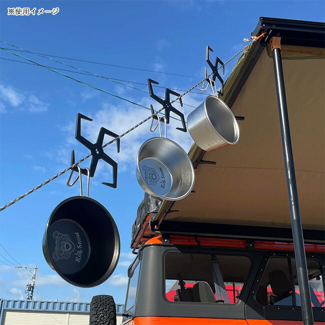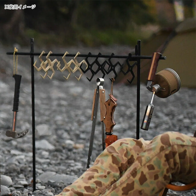手裏剣モチーフのken-shuri Hookです。 いろいろな種類のツールハンガーに掛けてご使用可能です。 キャンプギアや焚き火ツール、調理ツールを掛けて整理整頓するのに便利です。 また、真ん中に空いた穴は、エッジスタンドに挟み込むことが可能で、違った使い方も可能となります。 ※ken-shuri Hookに使用している黒皮鉄にメッキ加工を行なっております。色ムラや軽度の変色が生じることがございます。 金属製品の特性をご理解した上でのご購入をお願い申し上げます。 【重量】 約70g 【素材】 黒皮鉄(亜鉛メッキ加工) ※ご使用上の注意 防錆加工は行っておりませんが、亜鉛メッキ加工がされています。 素の黒皮鉄よりも錆びにくくなっていますが、メッキの剥がれなどから黒皮鉄の性質上、錆が出る可能性もあることをご了承ください。 また、直火も可能ですが、メッキ部分が剥がれたり、変色する場合がありますのでご注意下さい。 |