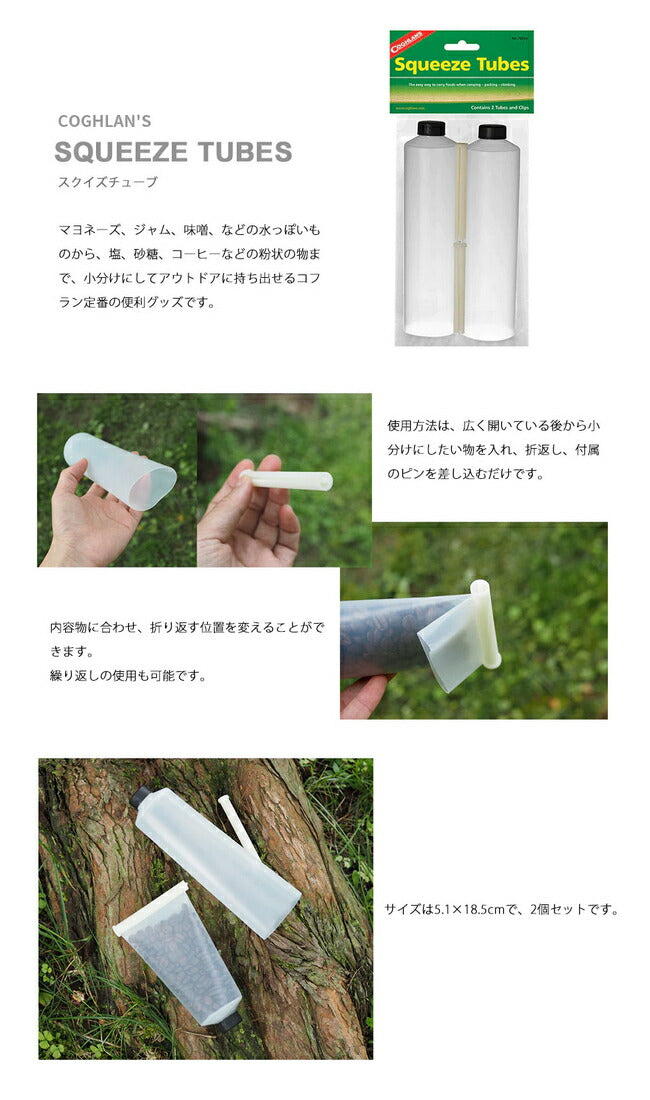 | COGHLANS コフラン スクイズチューブはマヨネーズ、バター、ジャムなどを携帯するのに便利な容器です。 くりかえして使用できます |