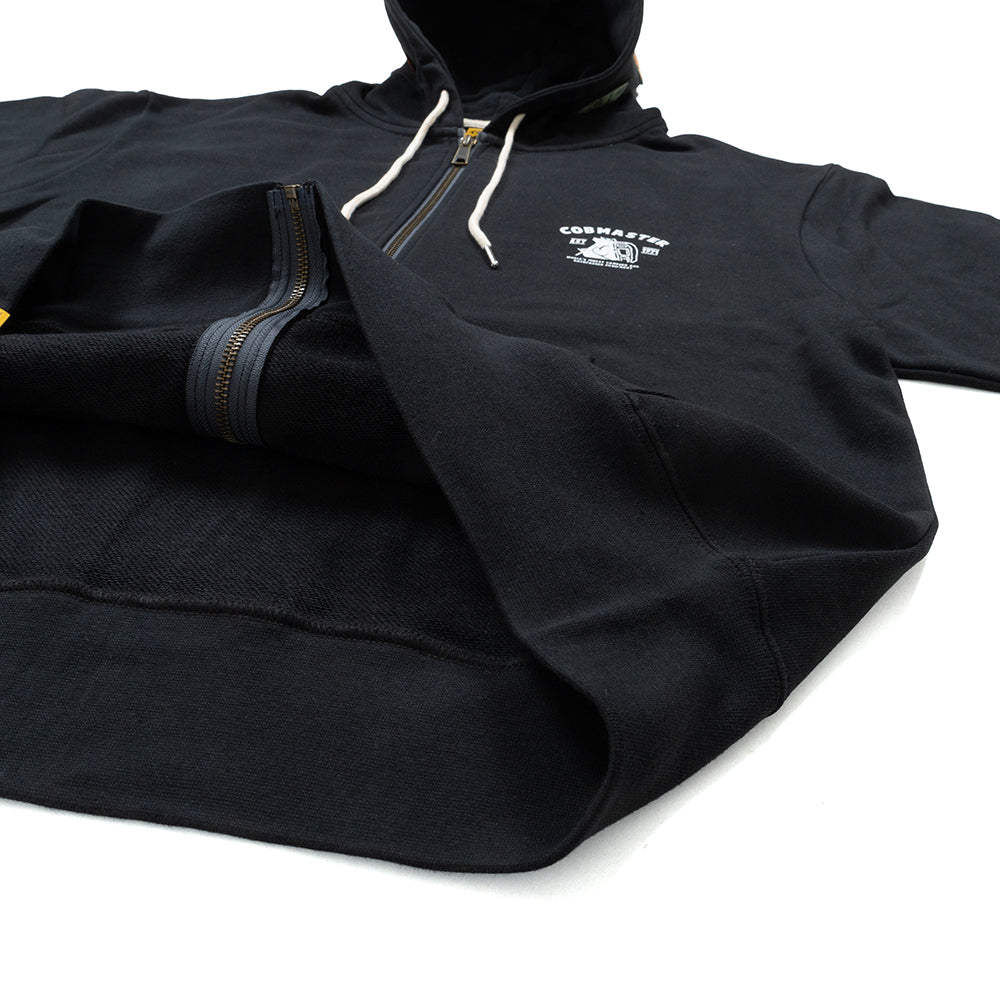 左胸にコブマスターのロゴが描かれたフルジップパーカーです。
