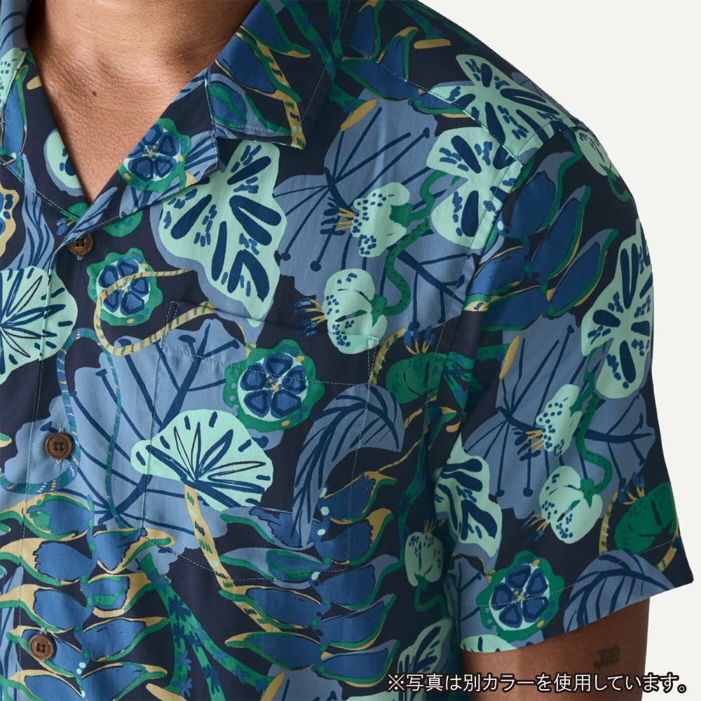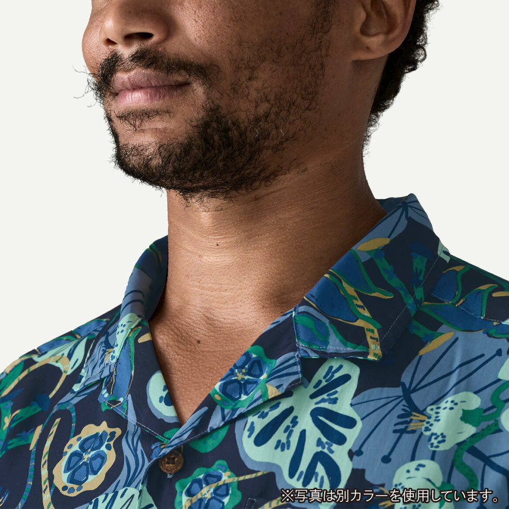 パタゴニアのメンズ・タイダル・スレッズ・シャツは、蒸し暑い気候でも快適な着心地を保つカジュアルなデザイン。