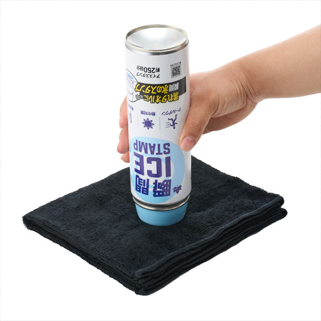 | 氷のスタンプで瞬間冷却!濡れタオルがカチカチに 濡らしたタオルやハンカチに直接プッシュするだけで、氷のスタンプができ冷却タオルとして使えるアイテム。 界面活性剤不使用で水分を凍らせるため、衣類がシミになる心配もなく自然な使用感でソフトにやさしく使えます。 また、無香料なので香りが苦手な方にもおすすめ。 炎天下の屋外作業やスポーツ、アウトドアなど、気軽に持ち運べます。 アイススタンプ約250回分使用できます。 【使い方】 1)タオルやハンカチ等を水で濡らします。 2)本体を逆さまにし、スタンプを直接当て1秒〜3秒間プッシュします。 3)冷やしたい箇所にアイシング、クールダウンしてください。 折りたたんでスタンプすると、複数箇所を氷結させることもできます。 【高い冷却効率を実現】 「スタンプ式」を採用した冷却剤です。 1点を集中氷結することにより、水分をより早く効率的に瞬間氷結させます。 【圧倒的コストパフォーマンス!約250回分の大容量】 1点集中で冷却することにより、大幅な効率化! 市場のスプレータイプは同容量で約70回前後に対し、3倍以上の使用回数を実現しました。 ※1回使用を1秒として換算した場合 【場所を選ばずに使いやすい】 スタンプ式氷結により冷却剤が散布しないため、使用時に周囲の人に迷惑をかける心配がありません。 また、無香料なので匂いも気になりません。 【化学物質不使用!肌にやさしい「水からできた氷」】 本製品の成分は100%のLPGのみで、余計な化学物質が入っていません。 環境にも肌にもやさしい「水だけでできた純粋な氷」ができます。 自然な使用感で、化学物質による肌荒れの心配もございません。 【さまざまなシーンで活躍】 アウトドアや仕事での熱中対策、スポーツ時のアイシングや、熱さましなどサッと体を冷やしたい時に便利。 また、保冷する必要がなく常温で使えるため、万が一の夏場の災害に備えて、防災備蓄品としてもおすすめです。 【内容量】 約300ml 【高圧ガス】 LPG |