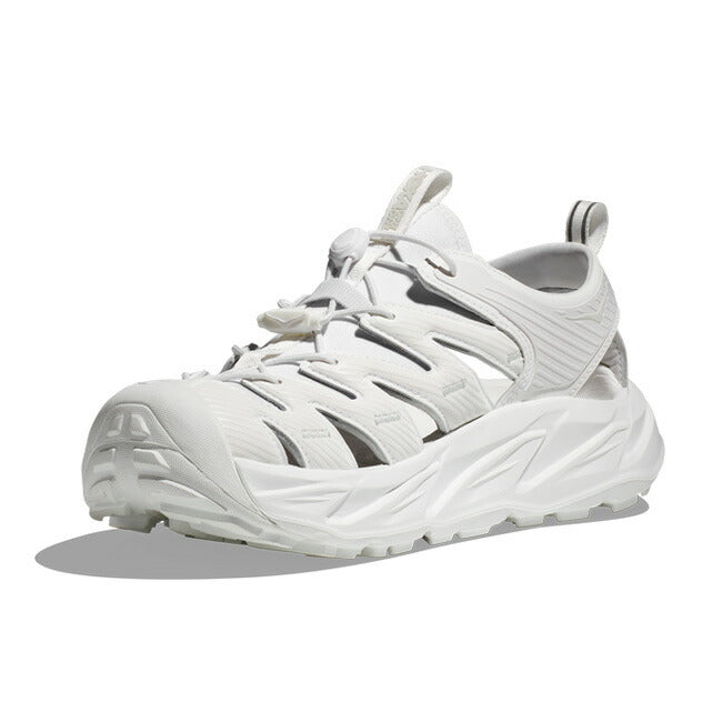| 水陸ともに、快適に。 HOKAならではのデザインと機能性を備えた、本格アウトドア派のためのマウンテンサンダル「HOPARA(ホパラ)」なら、あらゆるコンディションでのアウトドアアクティビティを楽しめます。 通気性を確保するため、シンセティックアッパーに排水のための切り込みを入れ、なおかつしっかり足を固定します。 柔軟性と快適性を高めるためのネオプレンのパッドや、簡単、便利に調整ができるクイックレースシステムを搭載。 さらに、反発性とクッション性の両方を提供するラバライズドEVAミッドソールに加え、足を保護するラバートウキャップ、アウトソールには4mmの溝を多方向に刻み、グリップを高めるなど、さまざまな路面への対応を可能にしました。 【用途】 ハイキング 【特徴】 ・シンセティック素材とネオプレンのアッパーが柔軟性、快適性、通気性を提供 ・ガセットを入れたネオプレンの構造が足を固定し、濡れたときの摩擦を軽減 ・便利で、簡単に調節でき、靴紐を保護するクイックレースシステム ・ラバライズドEVAのミッドソールが、クッション性と反発性を向上 ・ラバーのトウキャップが足を保護 ・アウトソールには濡れていても乾いていても滑りにくいラバーを採用 ・多方向の溝が凹凸のある路面もしっかりグリップ ・濡れた路面でもグリップを発揮する溝や刻みのパターン |