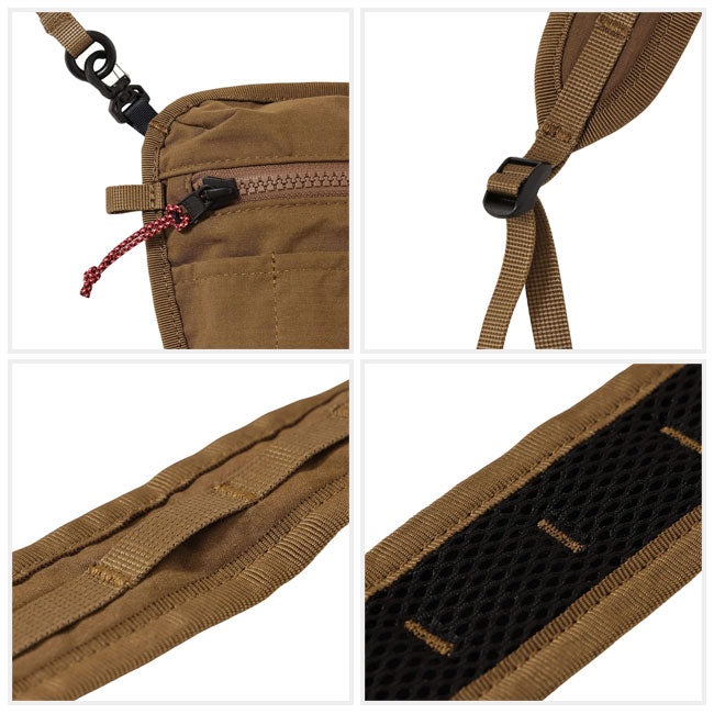 | ヒノックシリーズでおなじみの難燃素材を採用したサコッシュ。 カラビナを使ってヒノックアノラックパーカーにジョイントできる仕様になっております。 ジャケットやバッグに付けたり、単独で使ったりすることで、さまざまなシーンやスタイルに合わせて使えます。 シンプルなデザインでどんなスタイルでも使いやすいアイテム。 スッキリとしたスリムなデザインですが、マチが付いているため2L以上カーバできる優れた収納力。 ヒノック素材は難燃性だけでなく、水や汚れにも強い特徴を持ちます。 アウトドアでの使用において、耐久性と防水性が求められるアウトドアやキャンプ時に活躍します。 このヒノックシリーズのサコッシュは、ジャケットやバッグとのジョイント機能、難燃性や耐久性など、アウトドアライフや日常使いにおいて様々なシーンで活躍できるアイテムです。 【HINOC(ヒノック)生地とは】 コットンライクなポリエステル生地に難燃素材アラミドを配合したNANGA独自の『ヒノック生地』。焚き火によって舞う火の粉に対して、燃えにくい難燃性が一番の特徴。ナンガ独自の混合は、難燃素材では弱いとされる水や汚れに対しても安心してご利用いただけます。また、柔らかくアラミド繊維特有のゴワゴワ感は一切ありません。 ※こちらの商品は燃えにくい難燃素材を使用しておりますが、不燃素材ではございません。熱により焦げたり、溶けて穴が開くことがございます。直火または火の粉には十分ご注意の上ご使用くださいませ。 【生地】 表地:ポリエステル、アラミド繊維混合 裏地:ポリエステル100% |