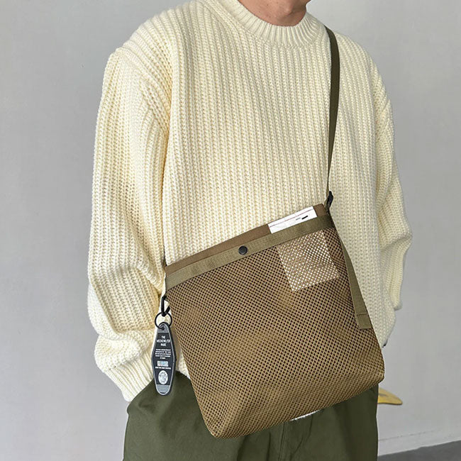 ナイロン生地とメッシュをコンビネーションしたユーロミリタリーなカラー展開のスモールサイズショルダーバッグ