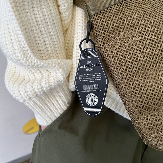 キーホルダーなどにも使える牛革製タグが付属しています。
