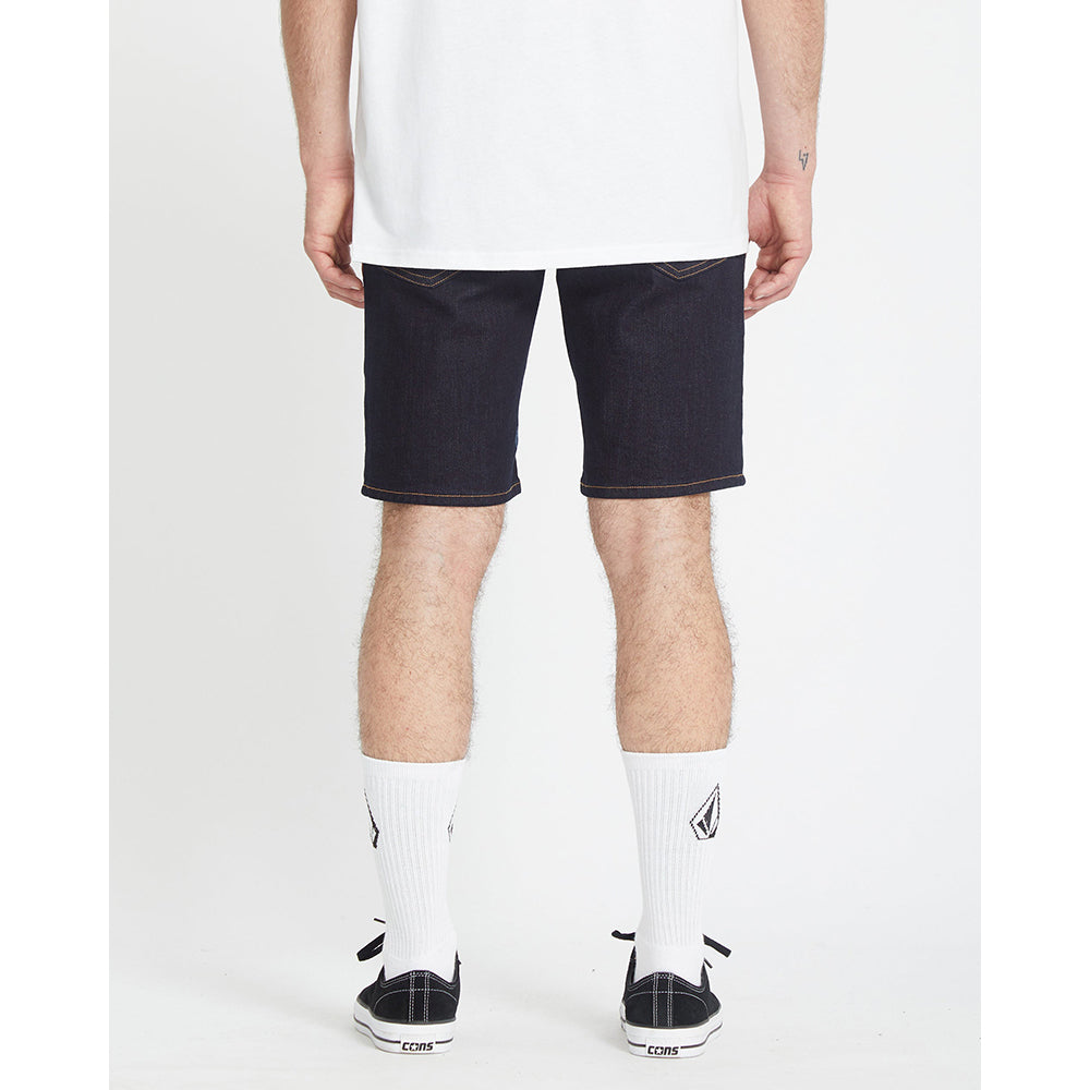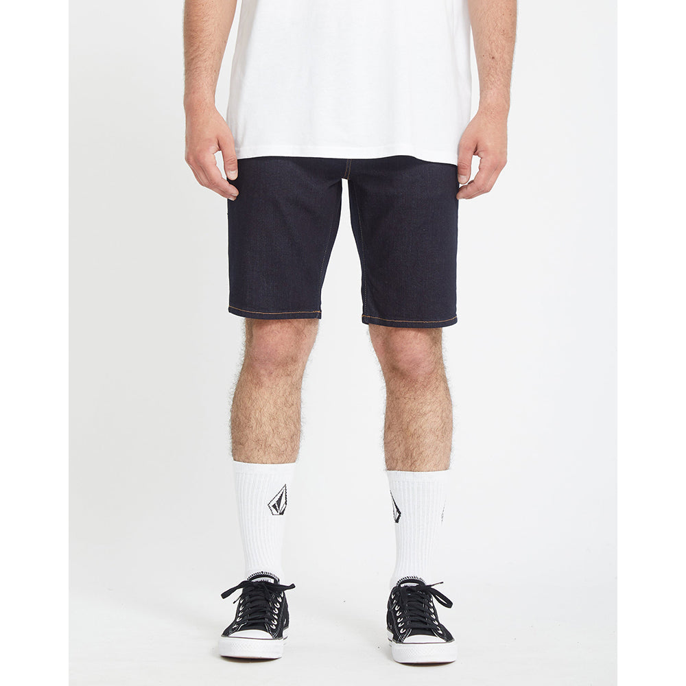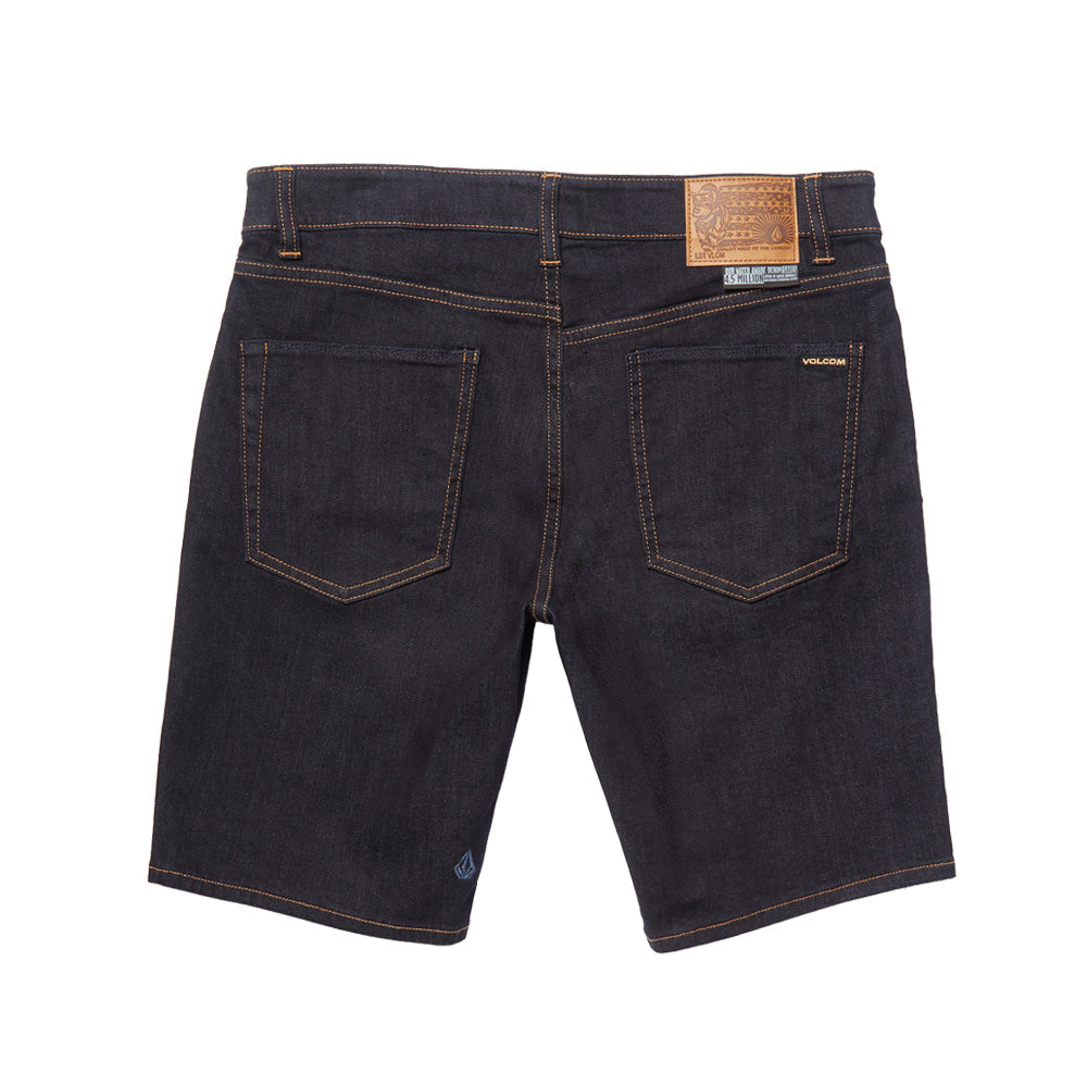インディゴストレッチデニムにリンスウォッシュ加工を施し、Volcomブランドのジーンズ特有のスタイリングとディテールが特徴。