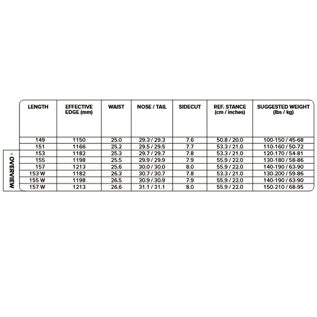 DOAのハイエンドモデルに位置し、太いウエストとコルク素材によってハイスピードでも安定したライディングが可能。